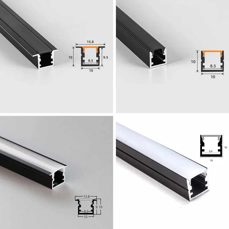 0.5m/1m 10x10mm preto led perfil de alumínio com canal estilo para 5050 5630 tira luz preto leitoso capa armário barra lâmpada