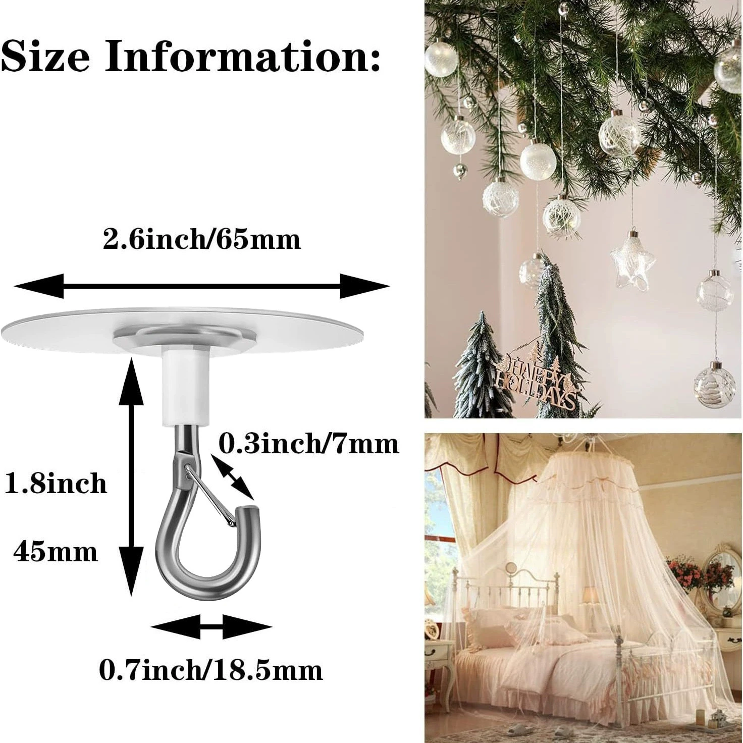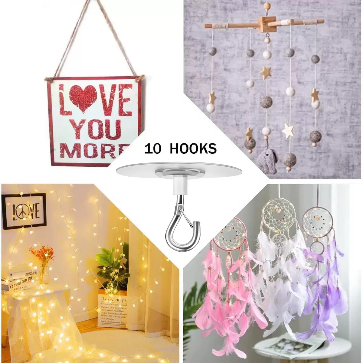 Método aplicável: gancho autoadesivo não perfurado, pode ser usado para decoração de férias, decoração de balão de teto, gancho de cozinha de banheiro