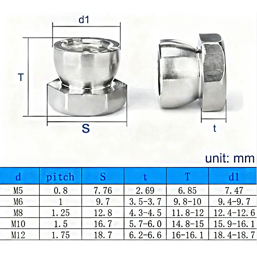 1 /2 /3 /5 /12pcs M5 M6 M8 M10 M12 304 Porca de cisalhamento de aço inoxidável Breakaway Anti Roubo Porcas de segurança Resistentes a violação
