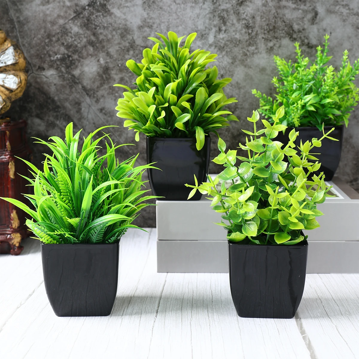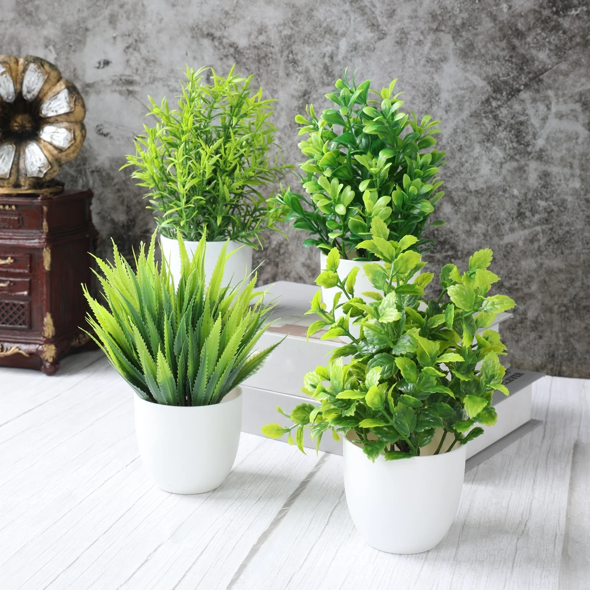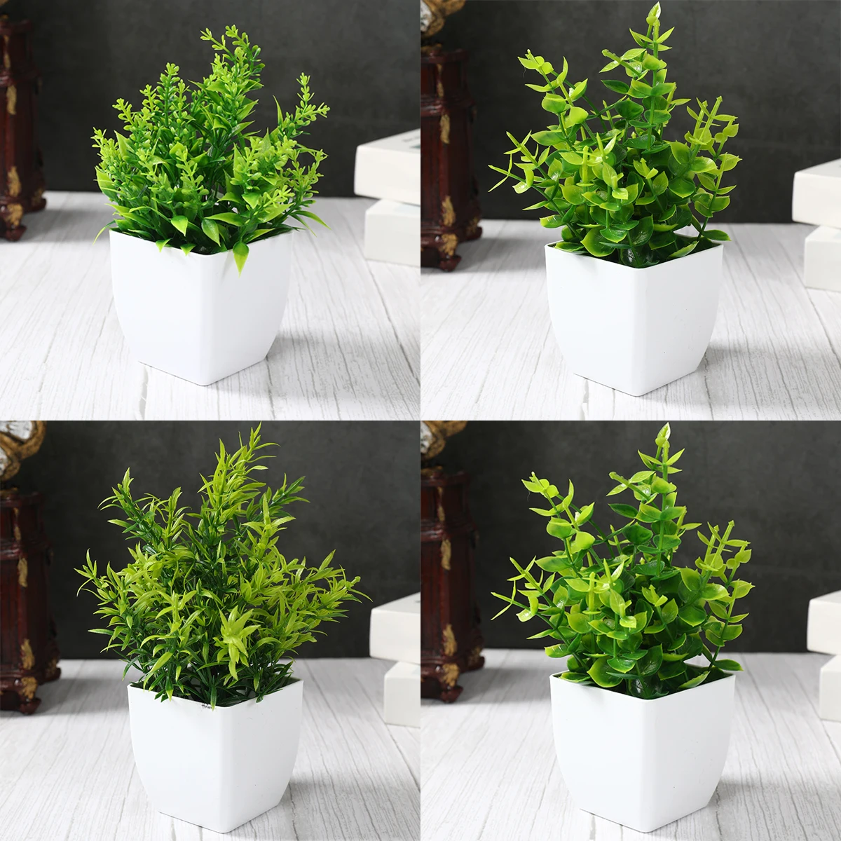 1/4 pçs plantas artificiais em vaso verde bonsai pequena árvore grama planta pote ornamento flor falsa para casa decoração do jardim festa de casamento