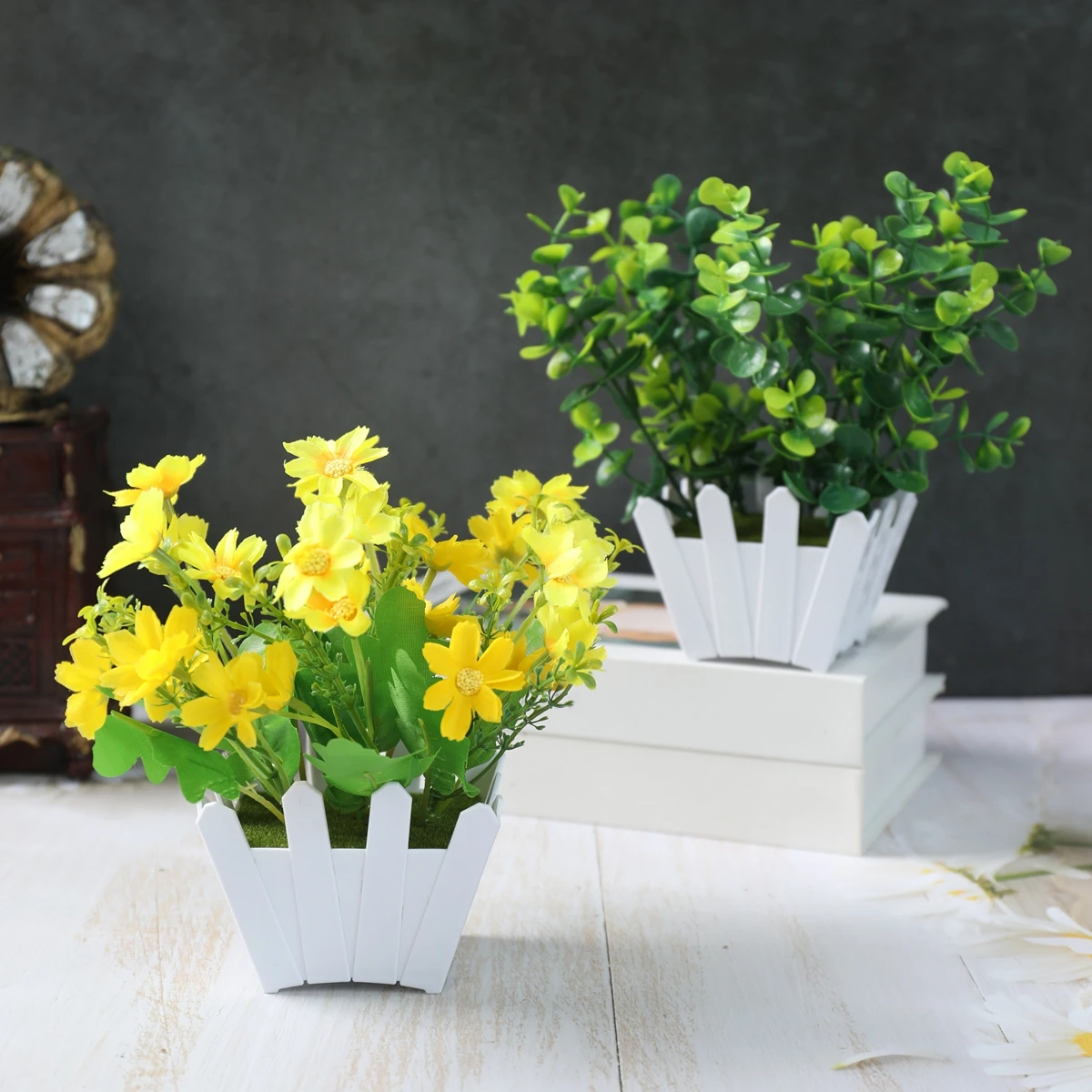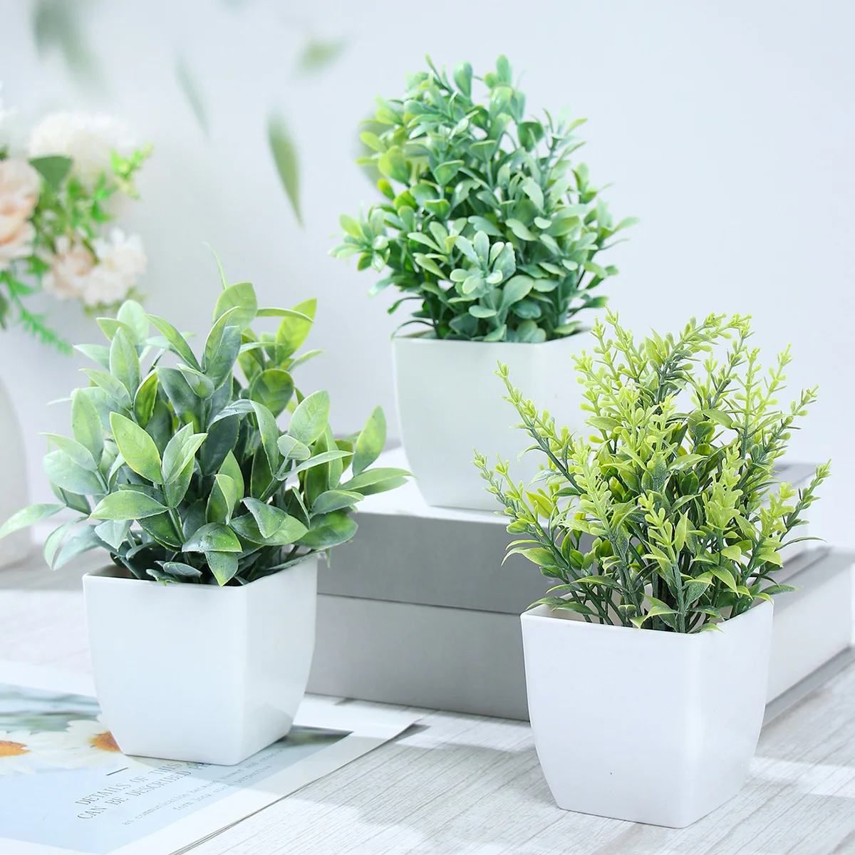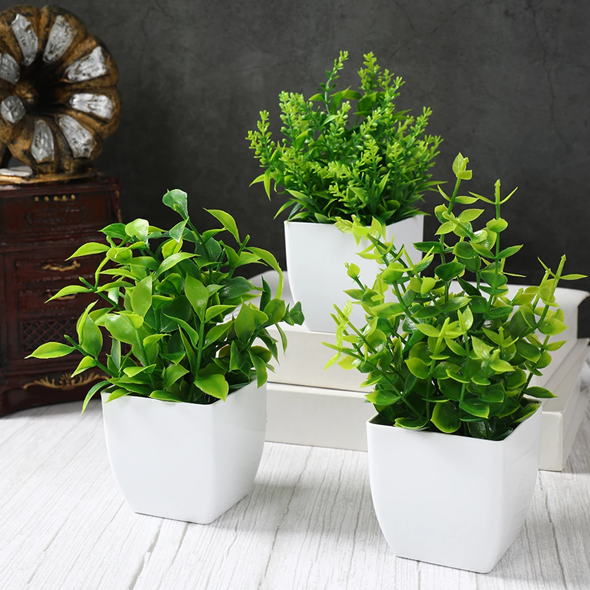 1/4 pçs plantas artificiais em vaso verde bonsai pequena árvore grama planta pote ornamento flor falsa para casa decoração do jardim festa de casamento