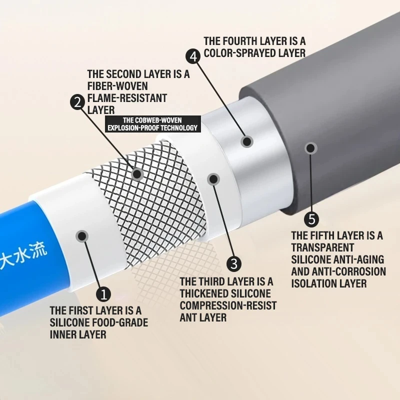 【Materiais de alta qualidade】Nossa mangueira de bico de chuveiro que possui características como resistência a altas temperaturas, alta pressão e à prova de explosão