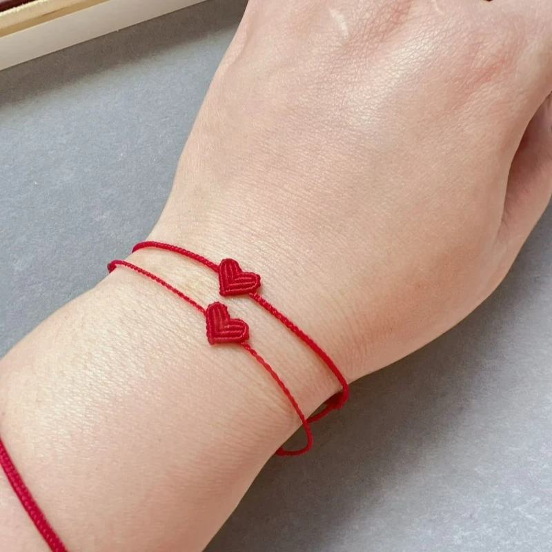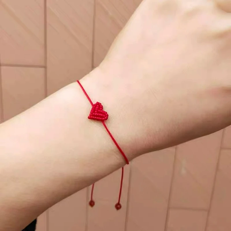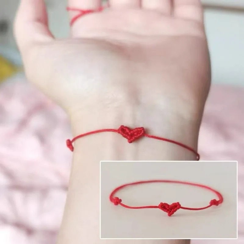 1/50 pçs dia dos namorados em forma de coração pulseira para wmen masculino mão tecido casal melhor amigo corda vermelha romântico amor casal pulseira