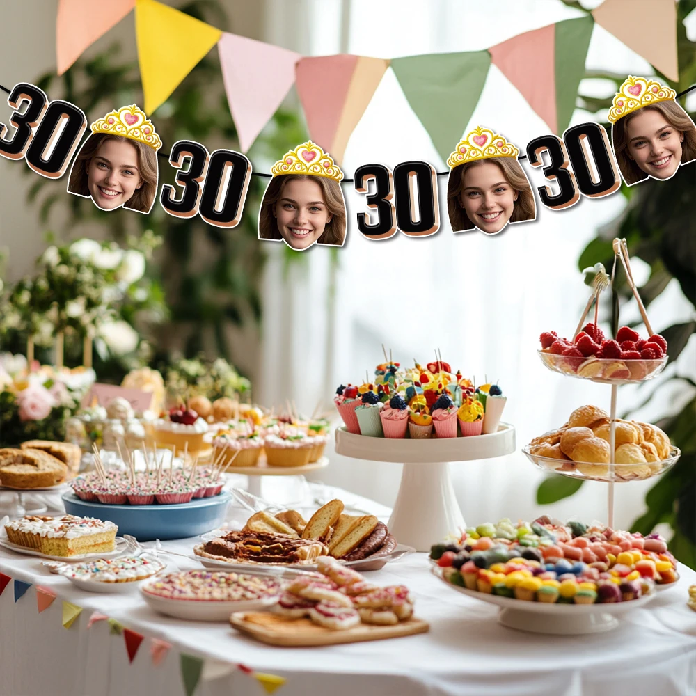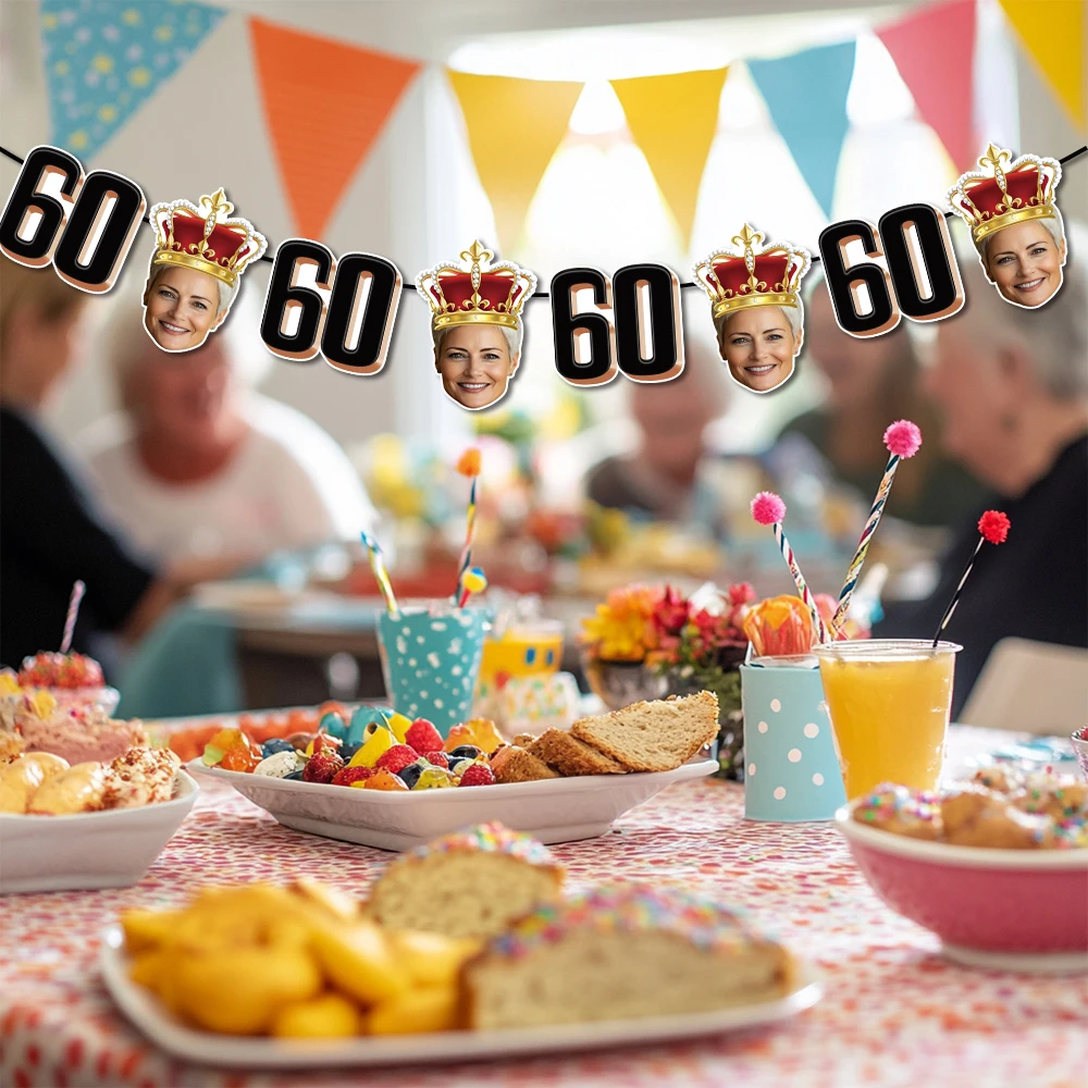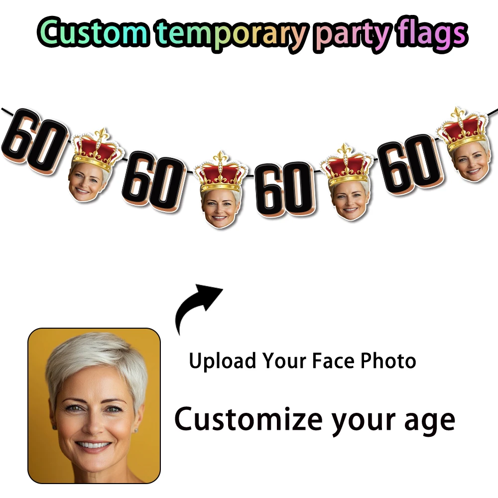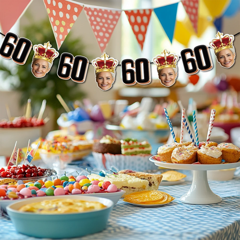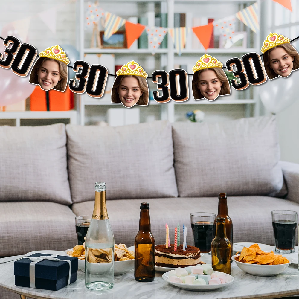 - > 1 conjunto de 8 peças de banner de foto de aniversário personalizado, faixa de foto de rosto personalizada para lembrancinhas de festa de aniversário de adultos