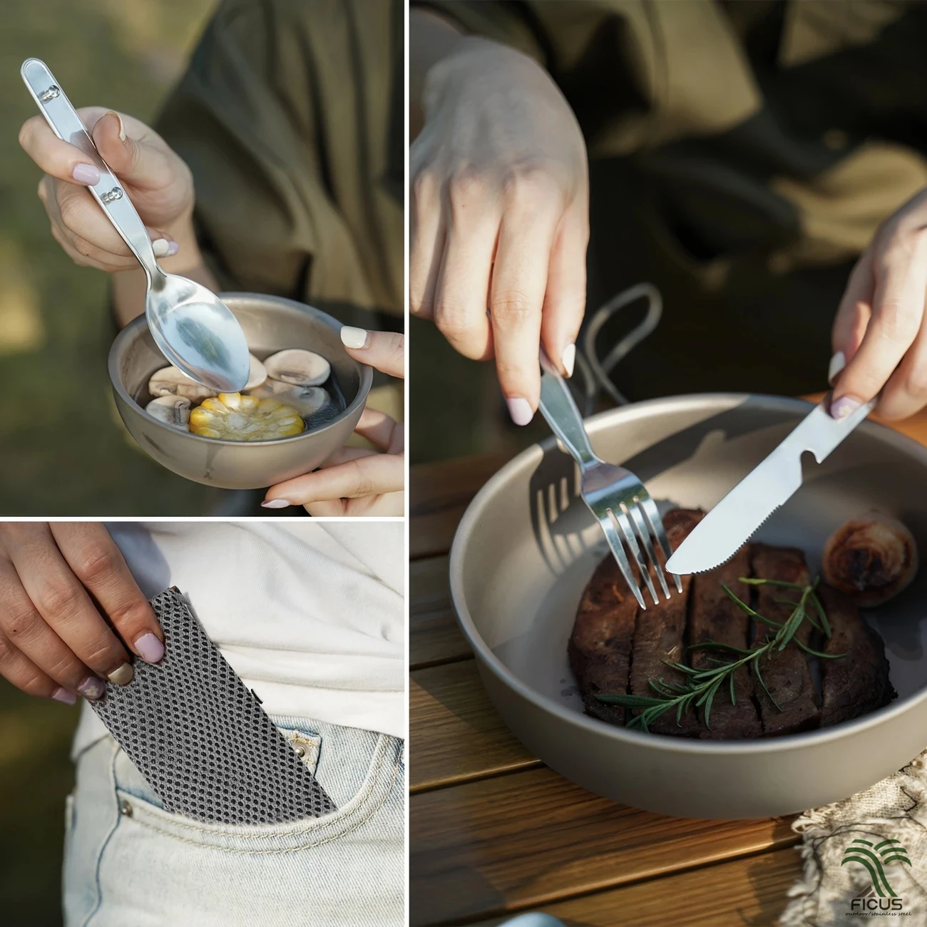 Resistente: esta talheres de acampamento é feita de aço inoxidável resistente que pode ser usada por muito tempo.