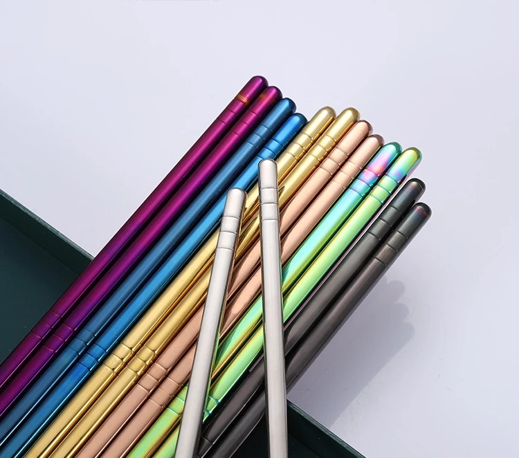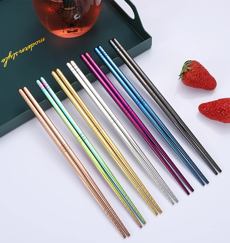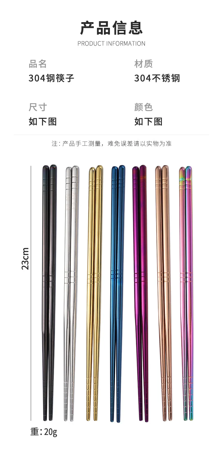 1 par de pauzinhos chineses de aço inoxidável 304, pauzinhos portáteis de metal antiderrapantes, pauzinhos de comida para sushi, utensílios de cozinha