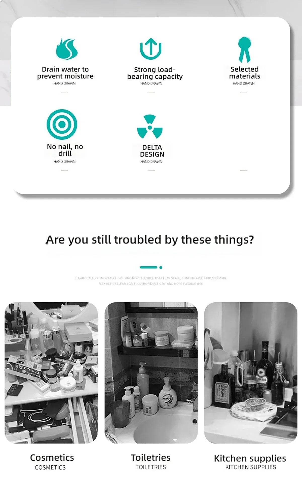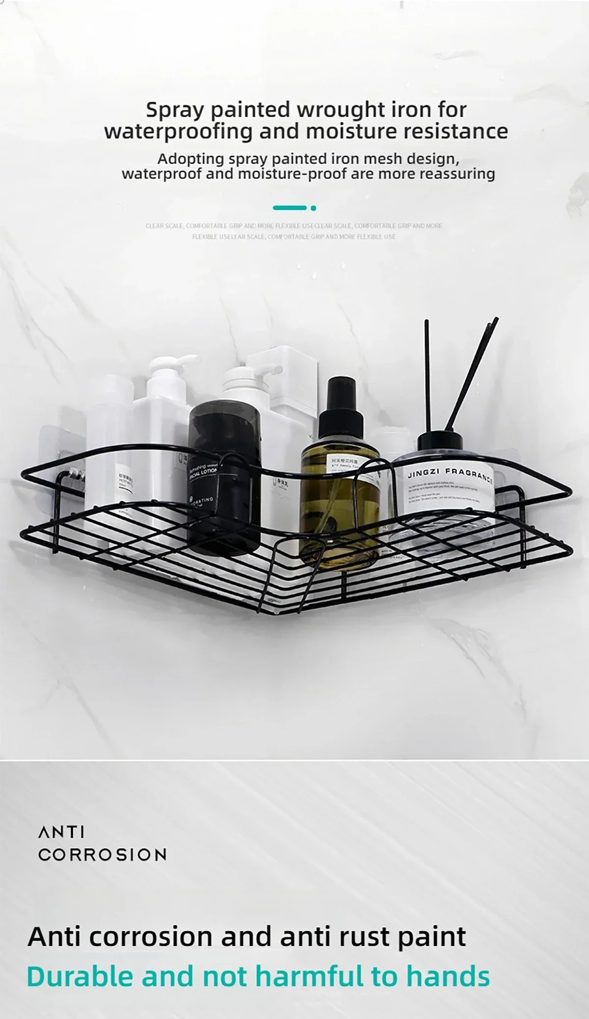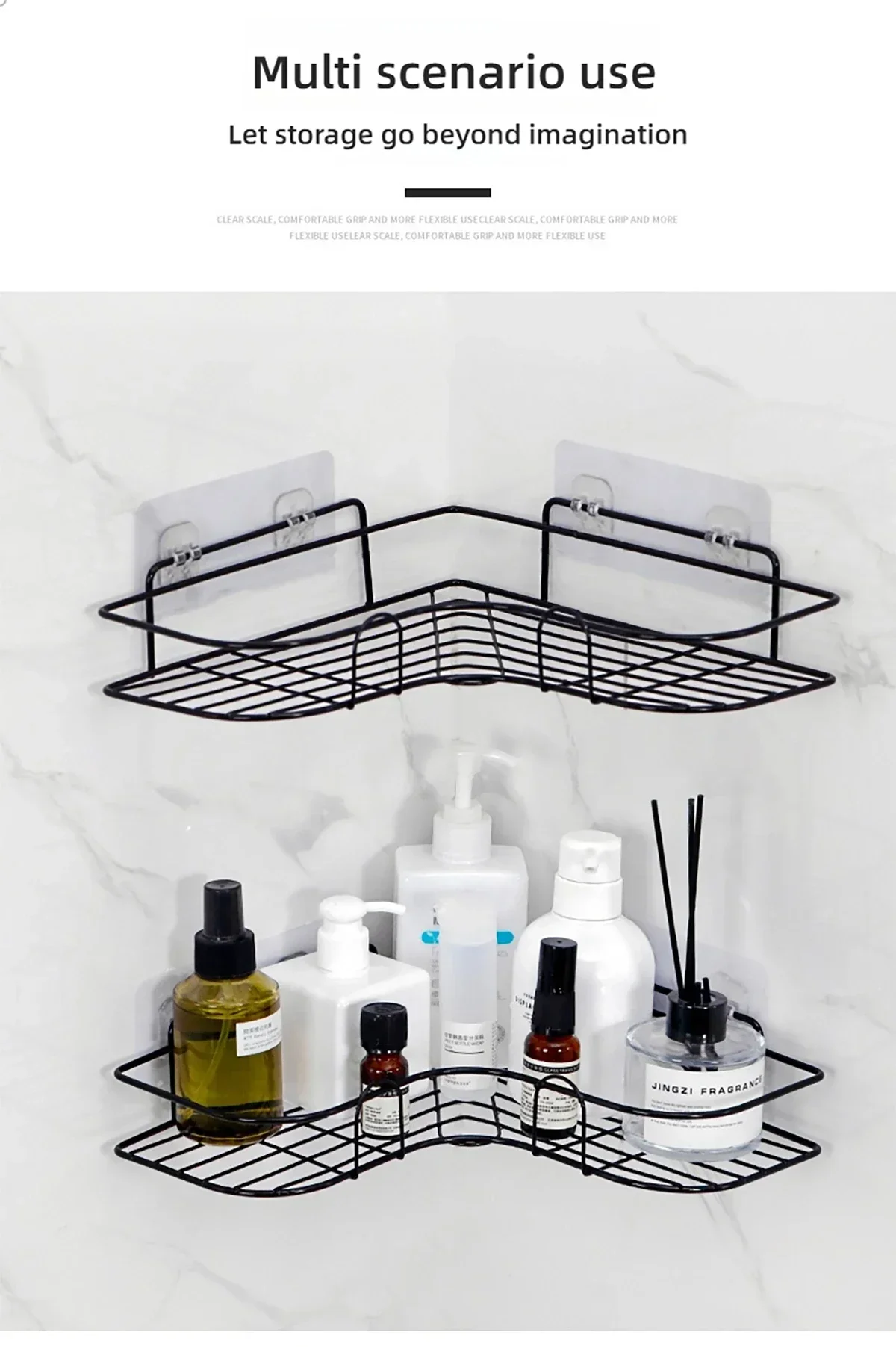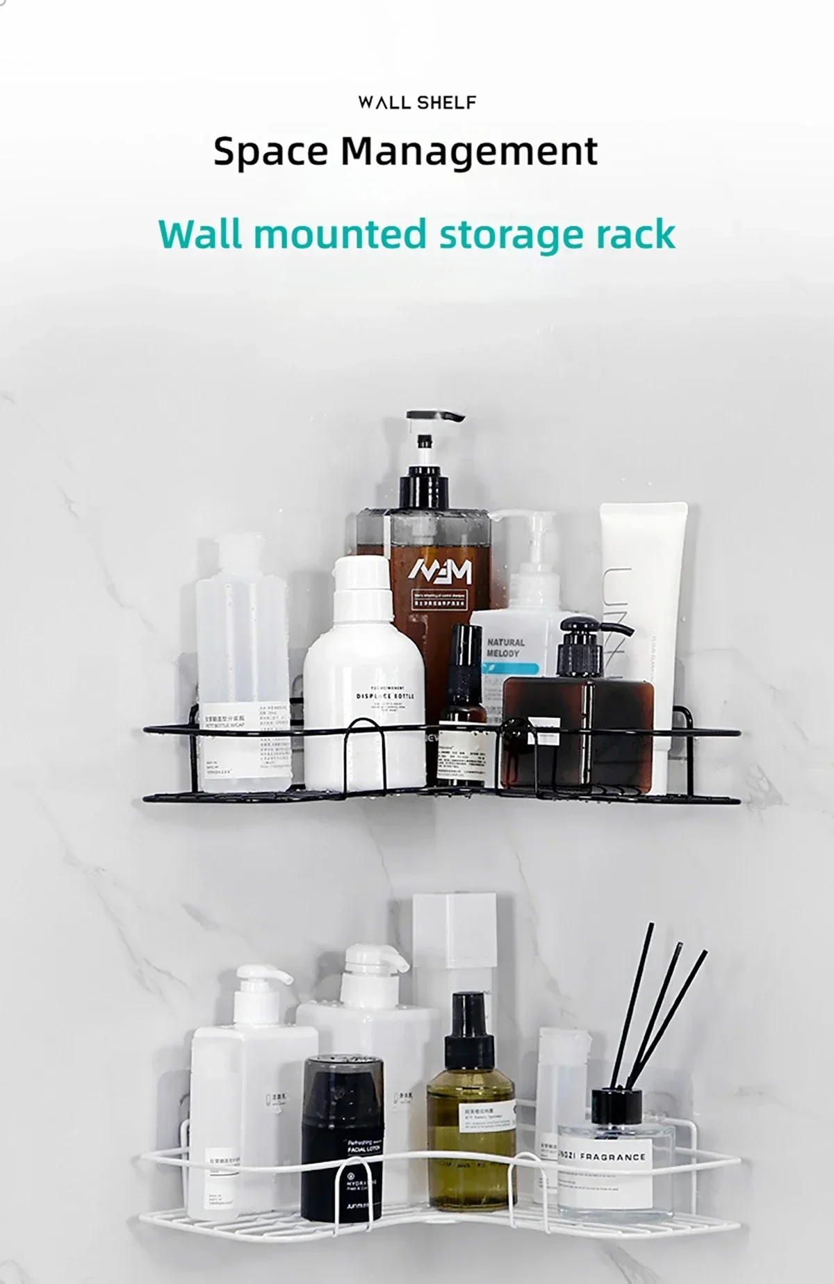 1 pc rack de armazenamento de banheiro prateleira do banheiro sem perfurado prateleira triângulo fixado na parede suporte acessório do banheiro