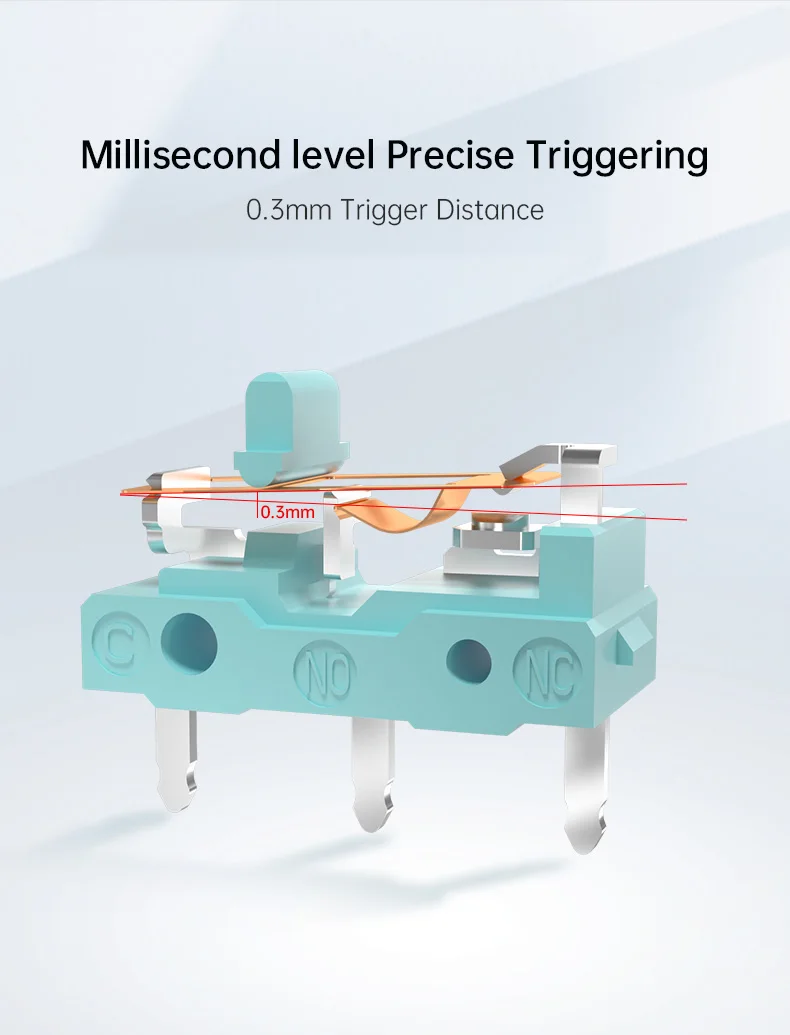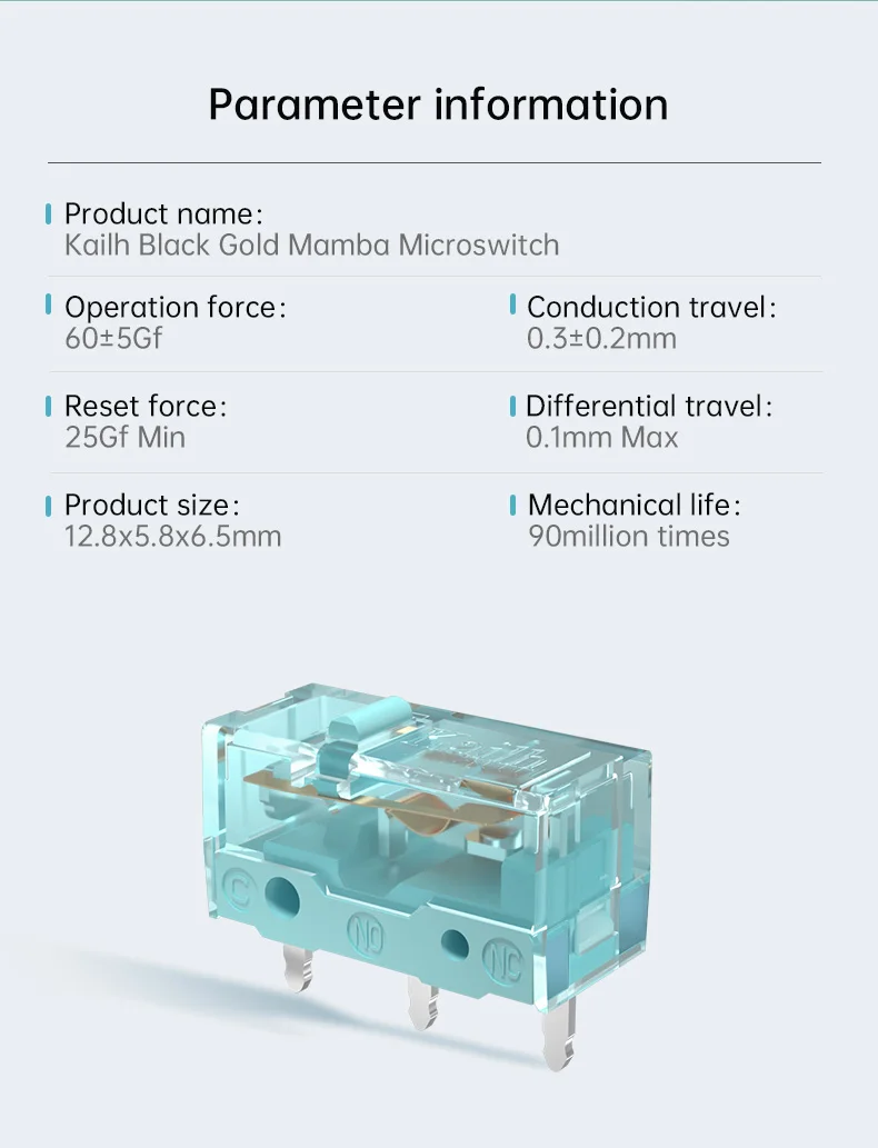 - > 1 peça kailh novo estilo gm8.0 micro interruptor 90 milhões de vida útil mouse para jogos 3 pinos concha transparente ponto azul