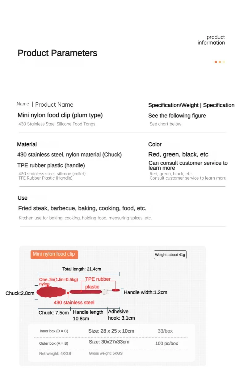 1 peça resistente a altas temperaturas náilon aço inoxidável clipe de alimentos ao ar livre churrasco pão clipe utensílio cozinha