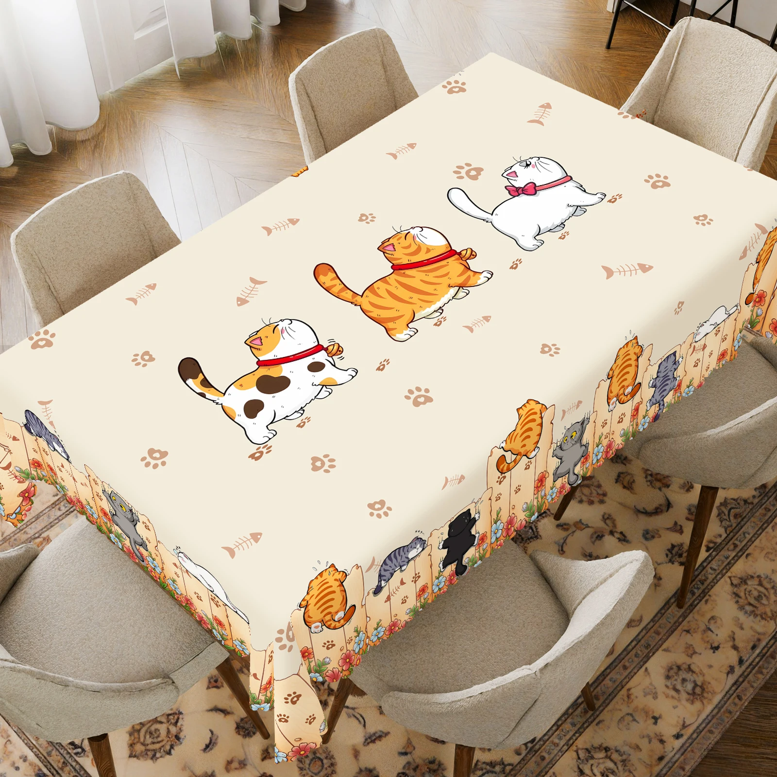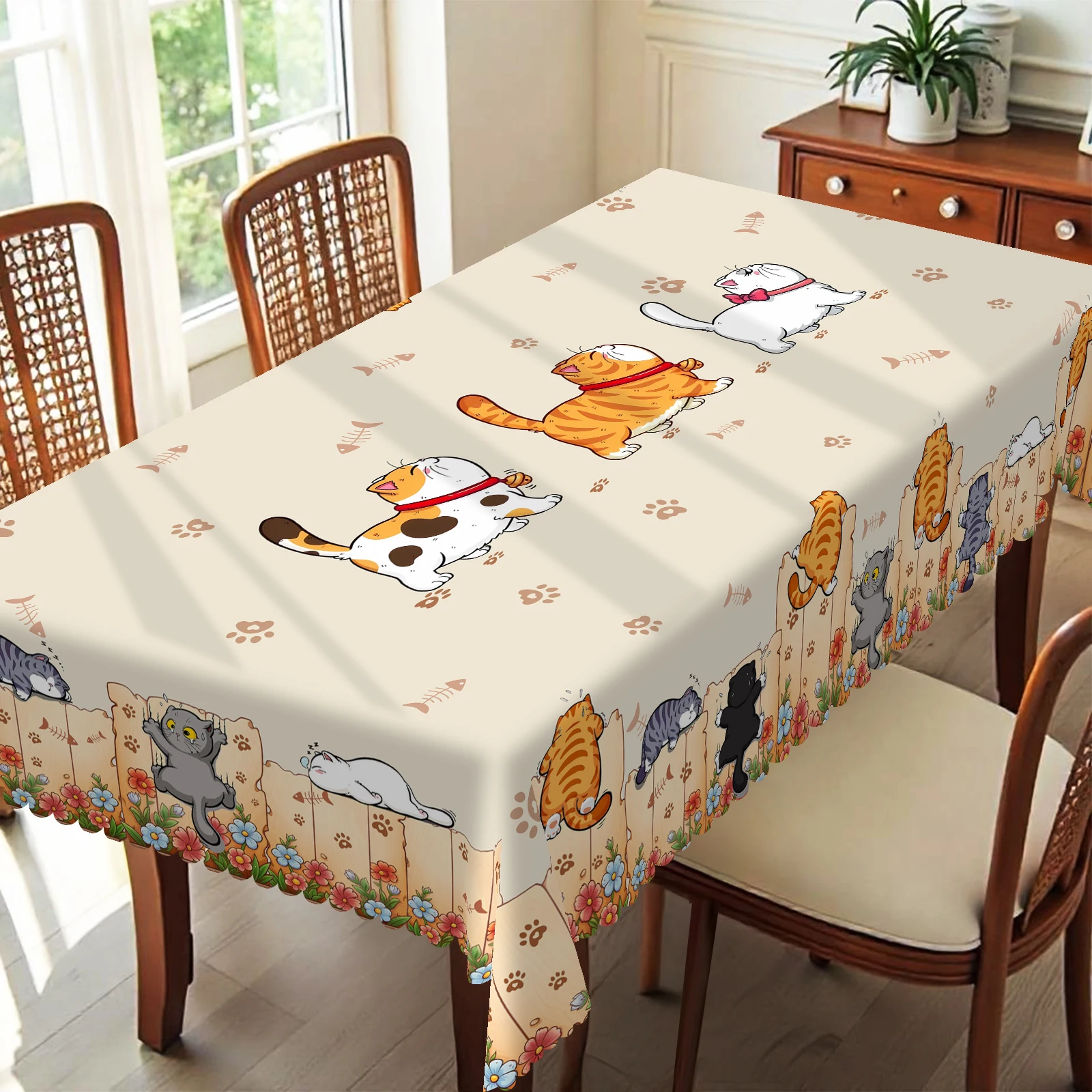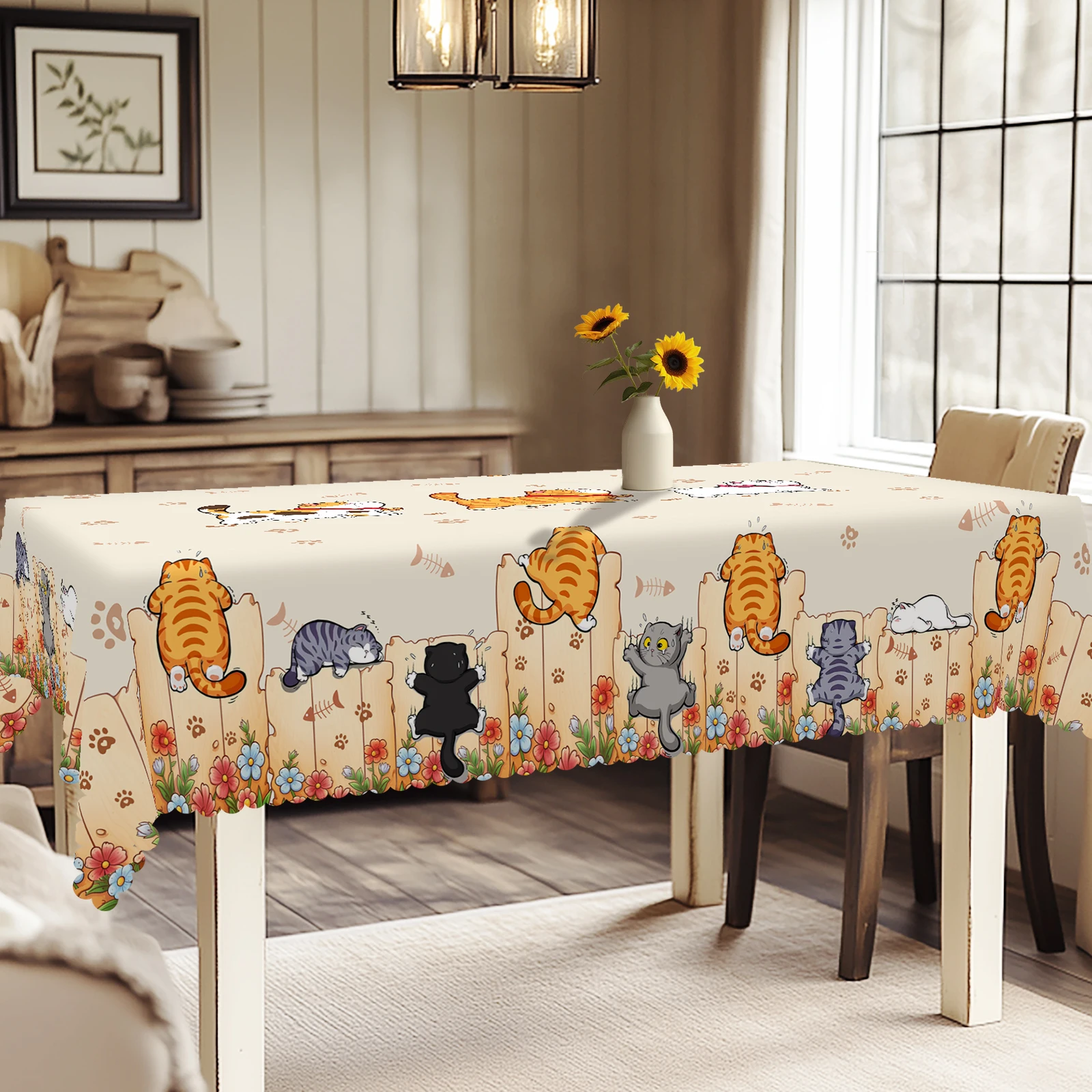1 peça, toalha de mesa com tema de gato para escalada de parede + 4 adesivos autoadesivos, cerca floral e padrão de impressão de gato, adequada para cozinha em casa, mesa de jantar, varanda, decoração de mesa de jantar