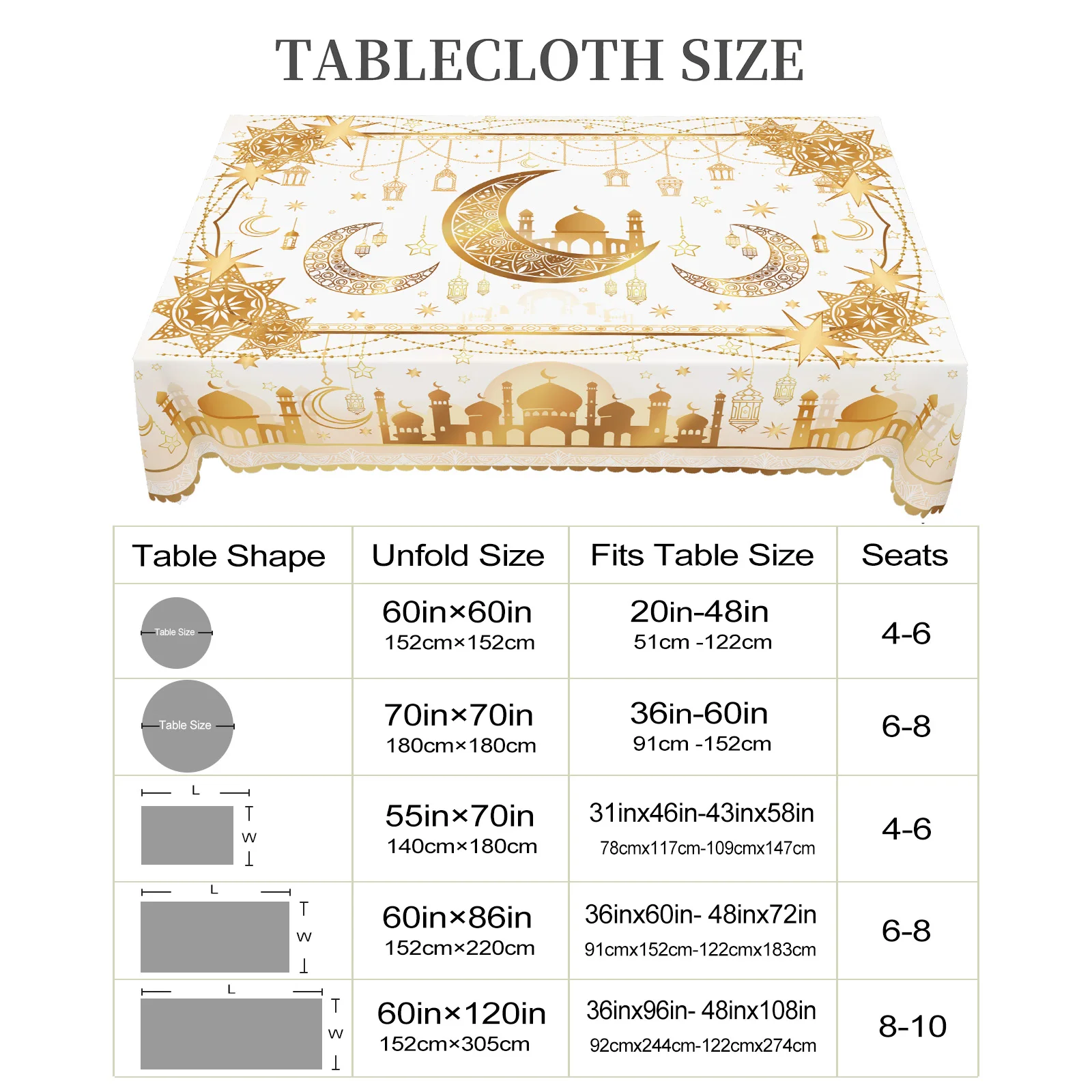 Cuidadosamente disponível em tamanhos redondos e retangulares para atender às necessidades de diferentes espaços.O tamanho redondo é adequado para mesas de centro de varanda e mesas laterais de sala - combinadas com jogos de chá de cores claras em tardes preguiçosas, a base branca e as estampas douradas estilo islâmico complementam-se, criando uma atmosfera fresca e elegante.OTamanho retangularAjusta-sePerfeitamenteEmUtensílios de cozinhaWorksESala de estarSala de jantarMesas:IVidaCapaManchas de minérioNosWorksDuranteRefeiçãoPreparação,EQuandoMatchadoComMadeiraOuroCerâmicaMesasParaDantar,TheStarsMoonsAndIslamArchitecturalElementosMistureHarmoniosamenteComTheDining RoomScenes.Além disso, pode ser usado como toalha de mesa para mesas de sobremesas em festas de fim de ano ou como capa decorativa para piqueniques ao ar livre.A base branca parece mais limpa e fresca em ambientes naturais, atendendo às necessidades de cenários diários e especiais com grande praticidade.
