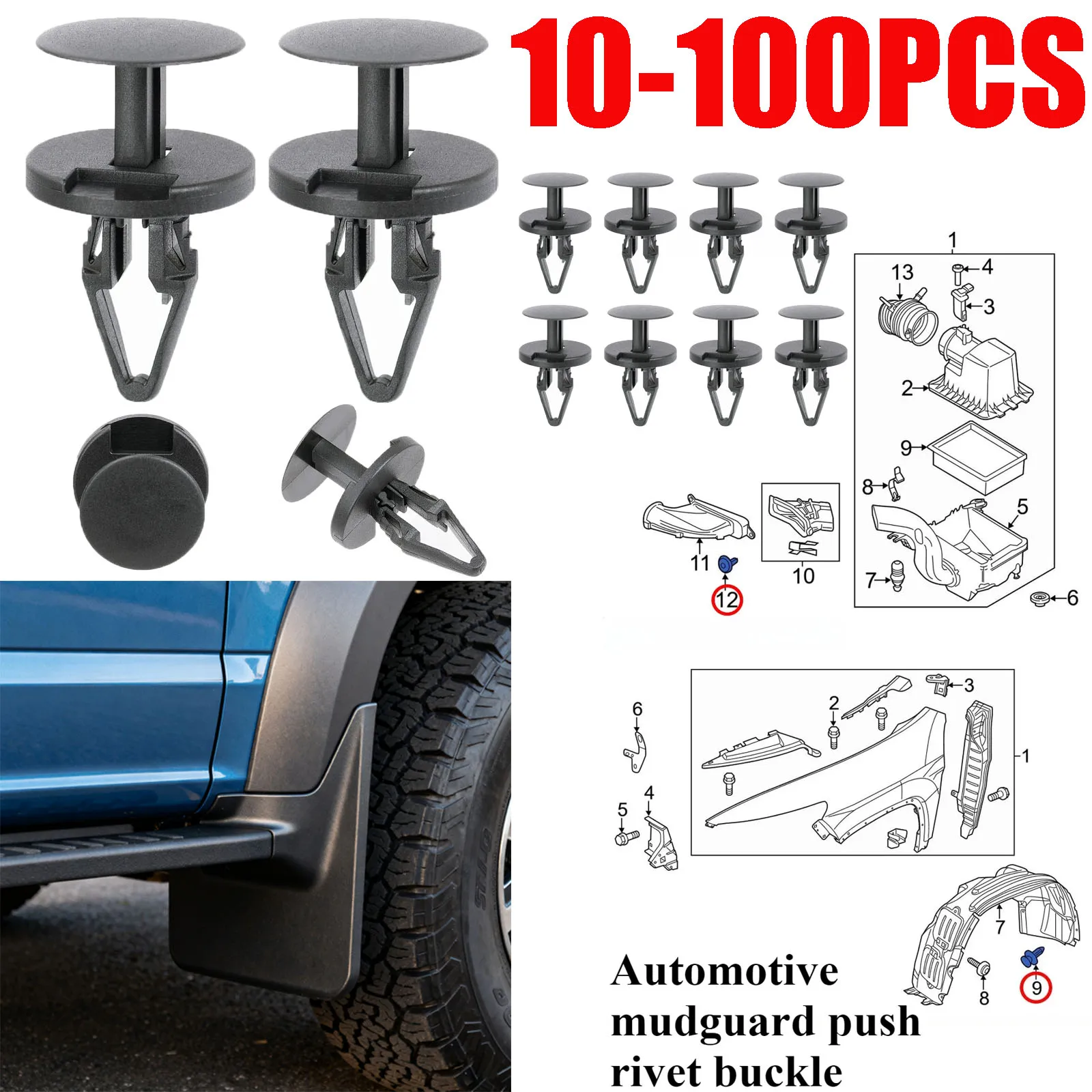 10-100 pces clipes automáticos 8mm rebites de plástico pára-choques clipe de guarnição de plástico clipes paralama fivela push rebite para ford roda arco forros