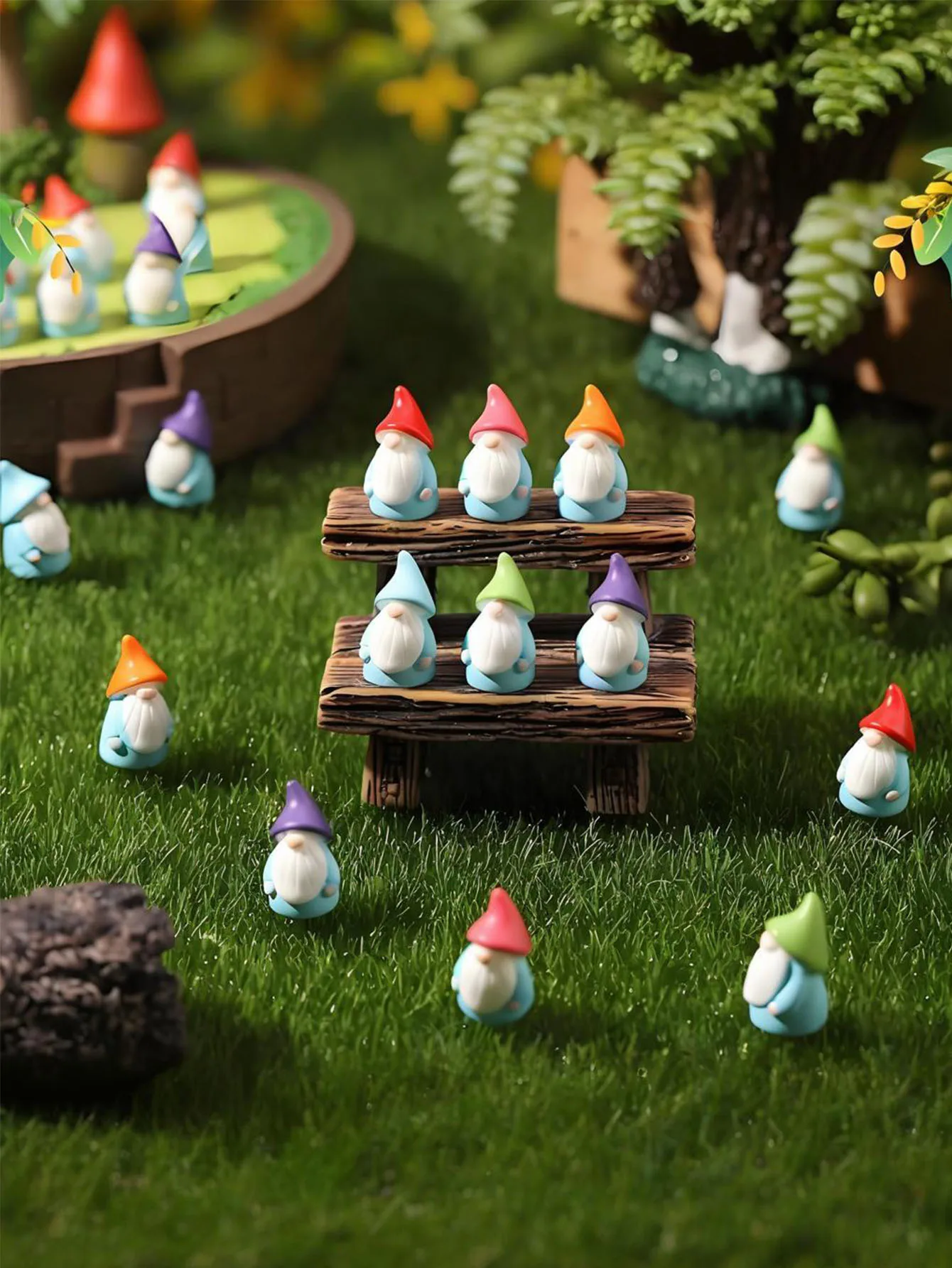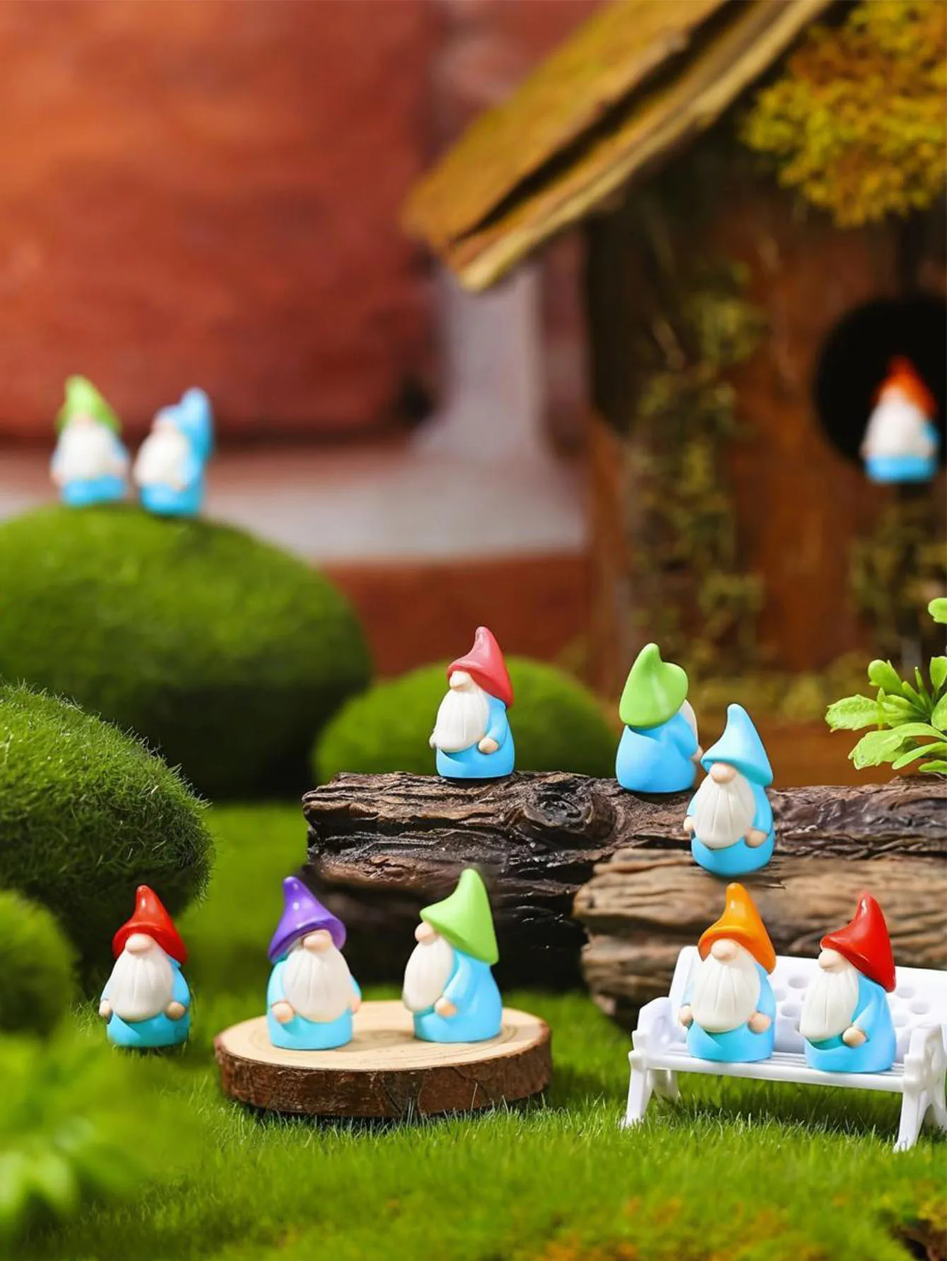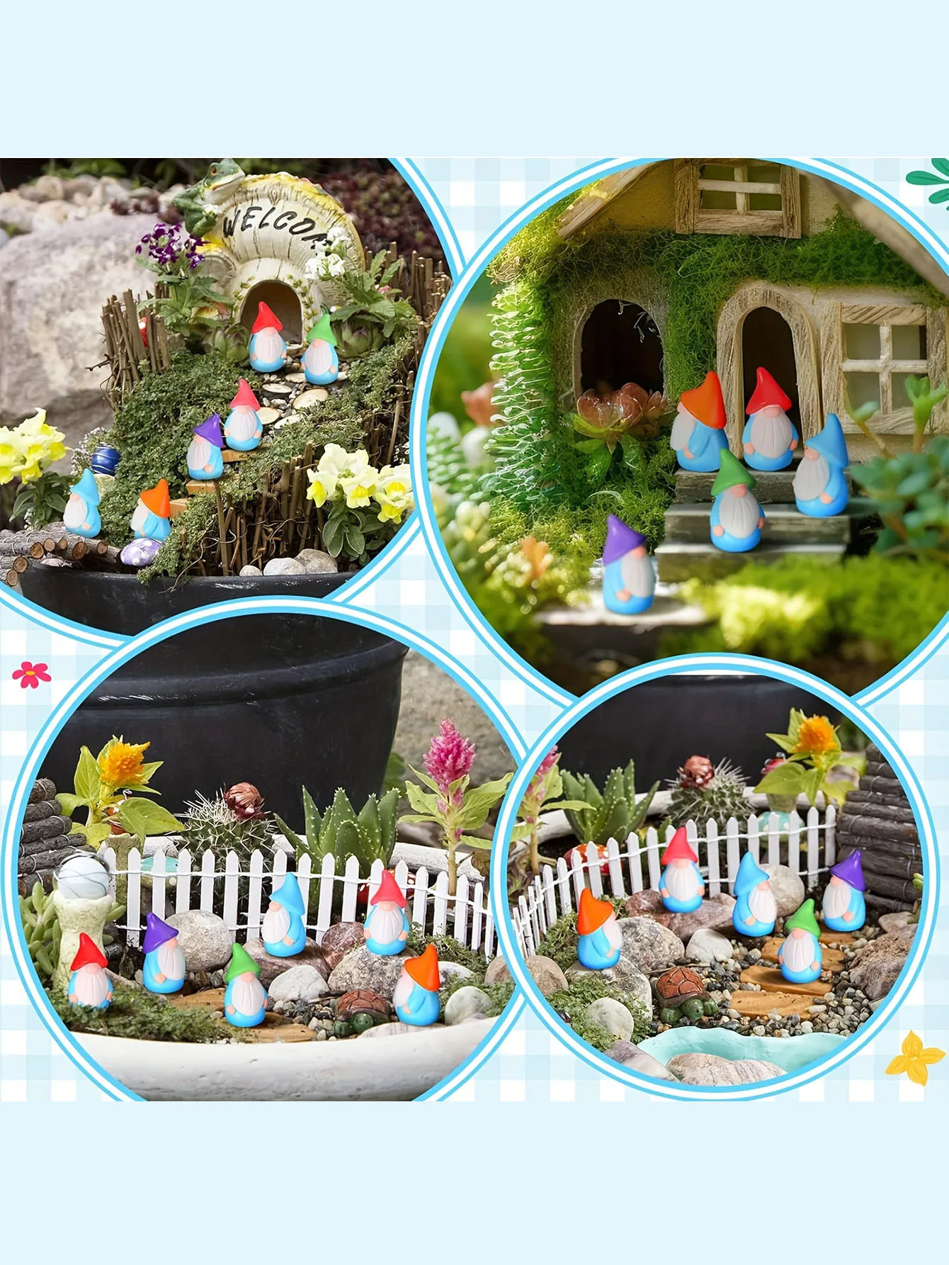10/20/50/100 pçs mini estátuas de gnomos de resina ornamentos cor aleatória bonito fada estatuetas de gnome em miniatura para jardim em miniatura