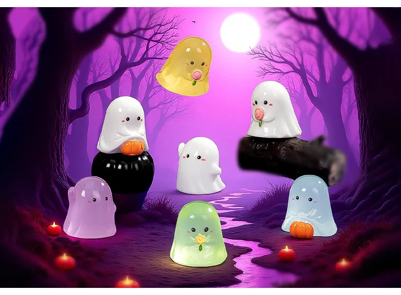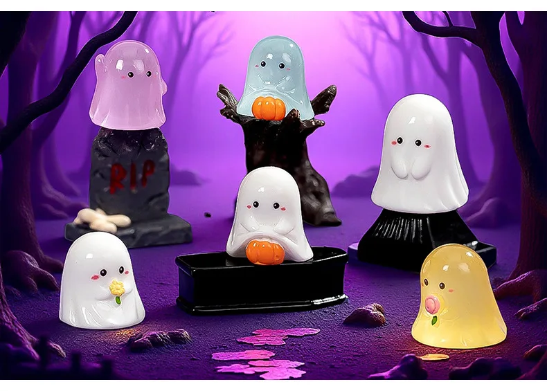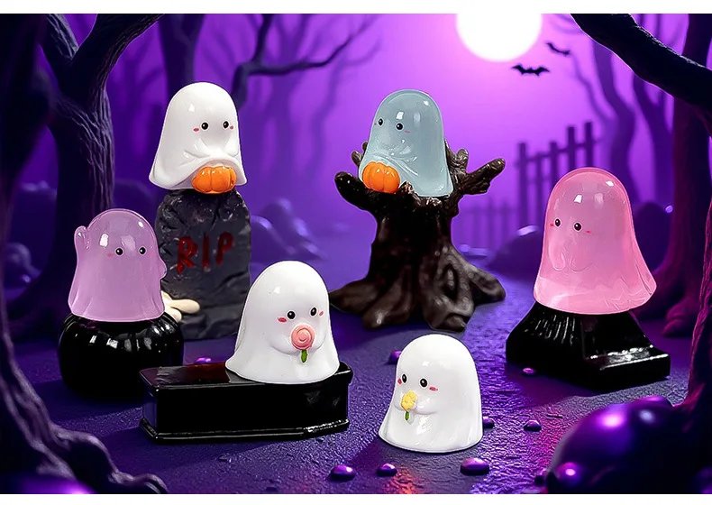 - > 10/20/50 pçs halloween luminosa mini resina fantasma pequenas estatuetas brilho no escuro festival festa decoração brilhante presentes em miniatura
