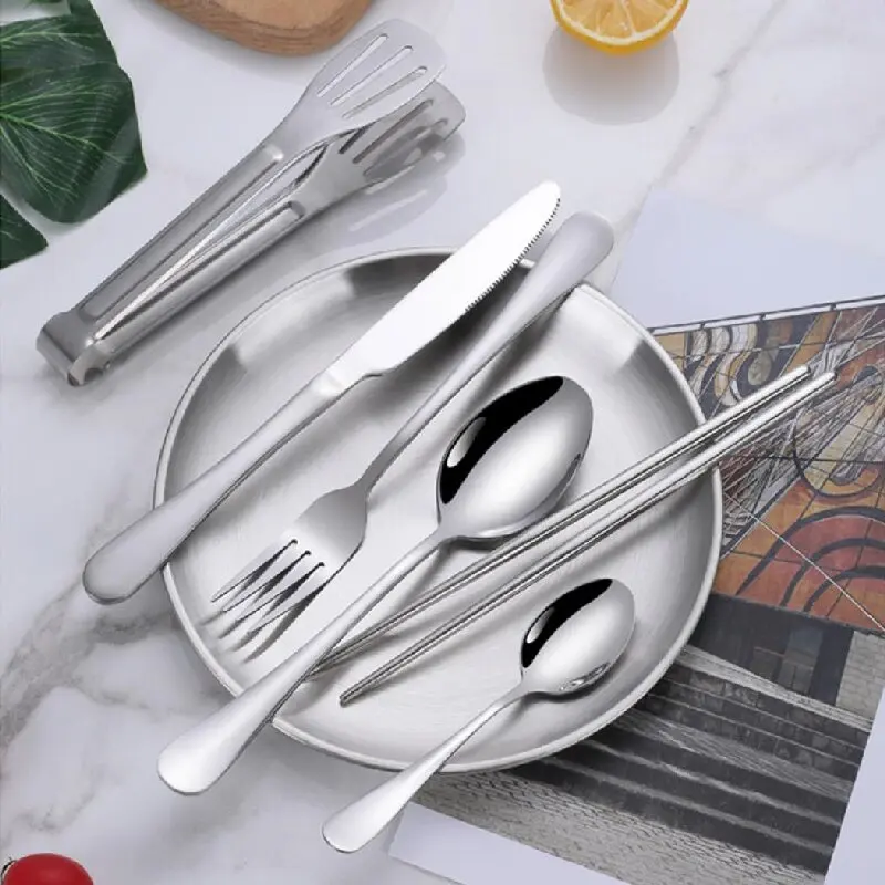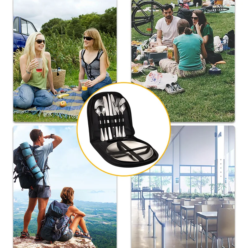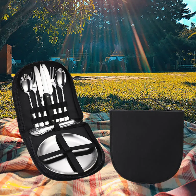 10/20 pçs acampamento ao ar livre talheres organizador utensílio piquenique conjunto portátil placa de aço inoxidável colher faca garfo pinças caminhadas