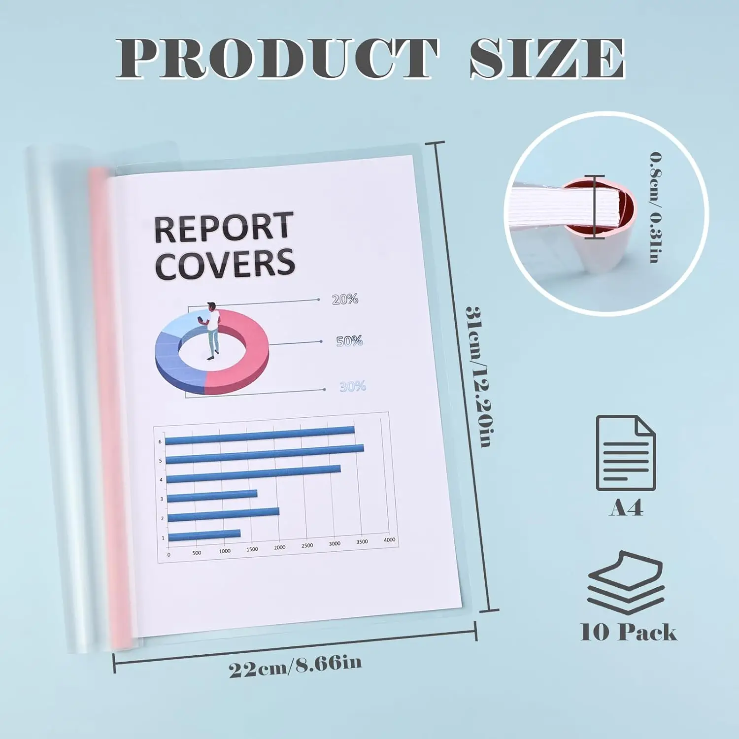 Tamanho da capa do relatório: As tampas transparentes do relatório medem 8,5 x 12 polegadas, ótimas para papel tamanho A4 e tamanho carta dos EUA (8,5 x 11 polegadas) e cobrem completamente papel e documentos para evitar que enruguem
