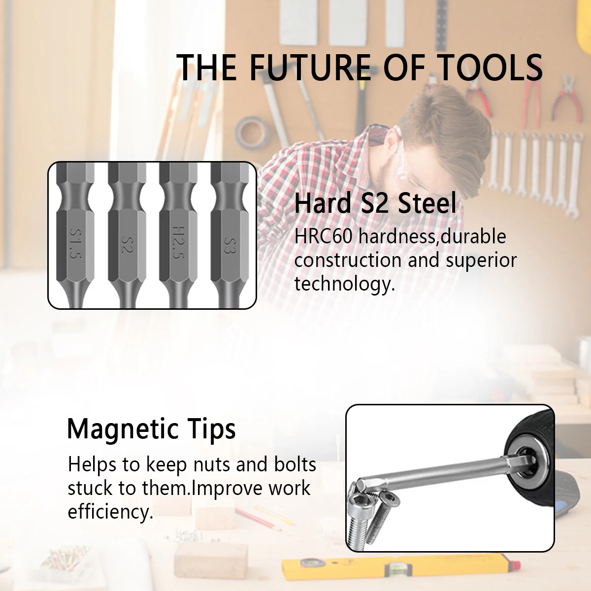 [Broca magnética] A dureza da broca de chave de até HRC60, o que pode evitar que as brocas quebrem e se desgastem.A broca hexagonal foi magnetizada, cada lado pode travar o parafuso com precisão e não danificará parafusos e chave de fenda.