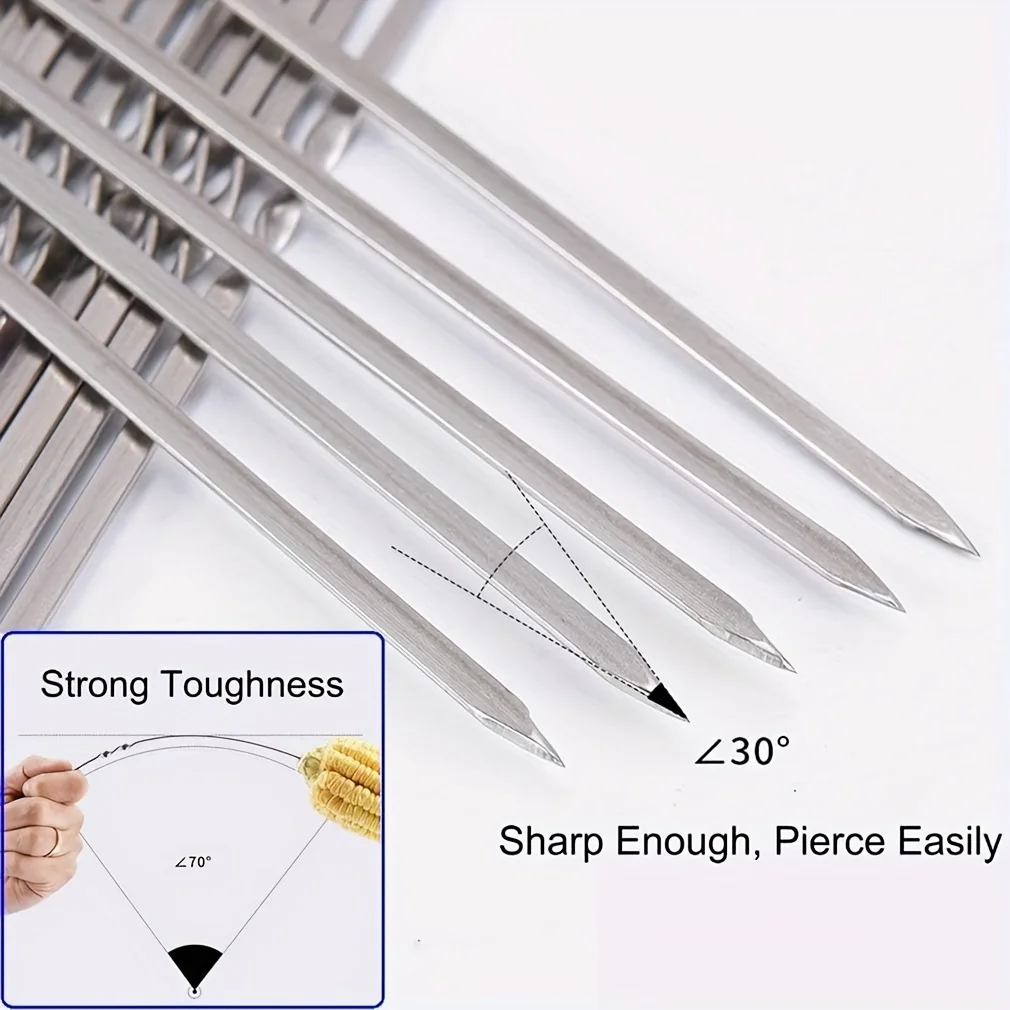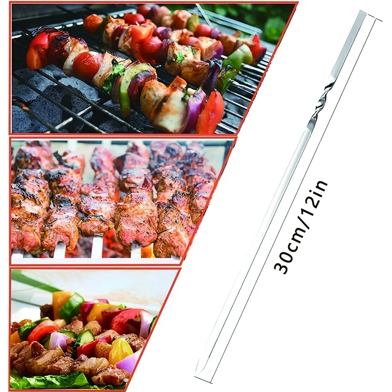 10 pçs espetos kabob de metal plano aço inoxidável churrasco espeto 12 "anti-rolo resistente shish kebob varas largas reutilizáveis gri