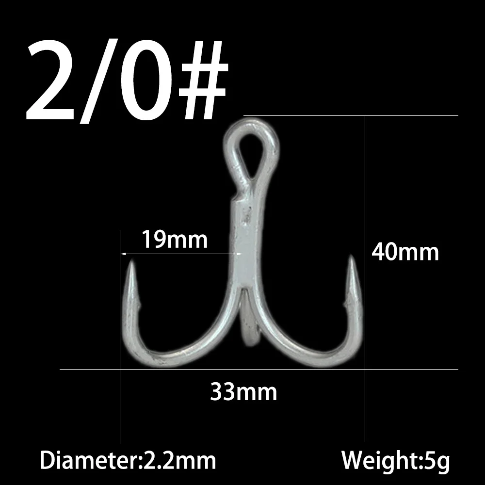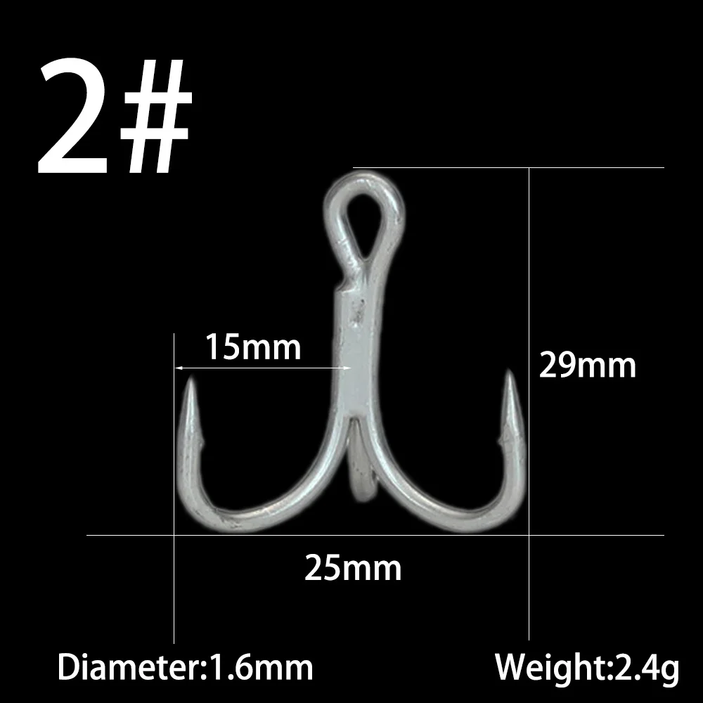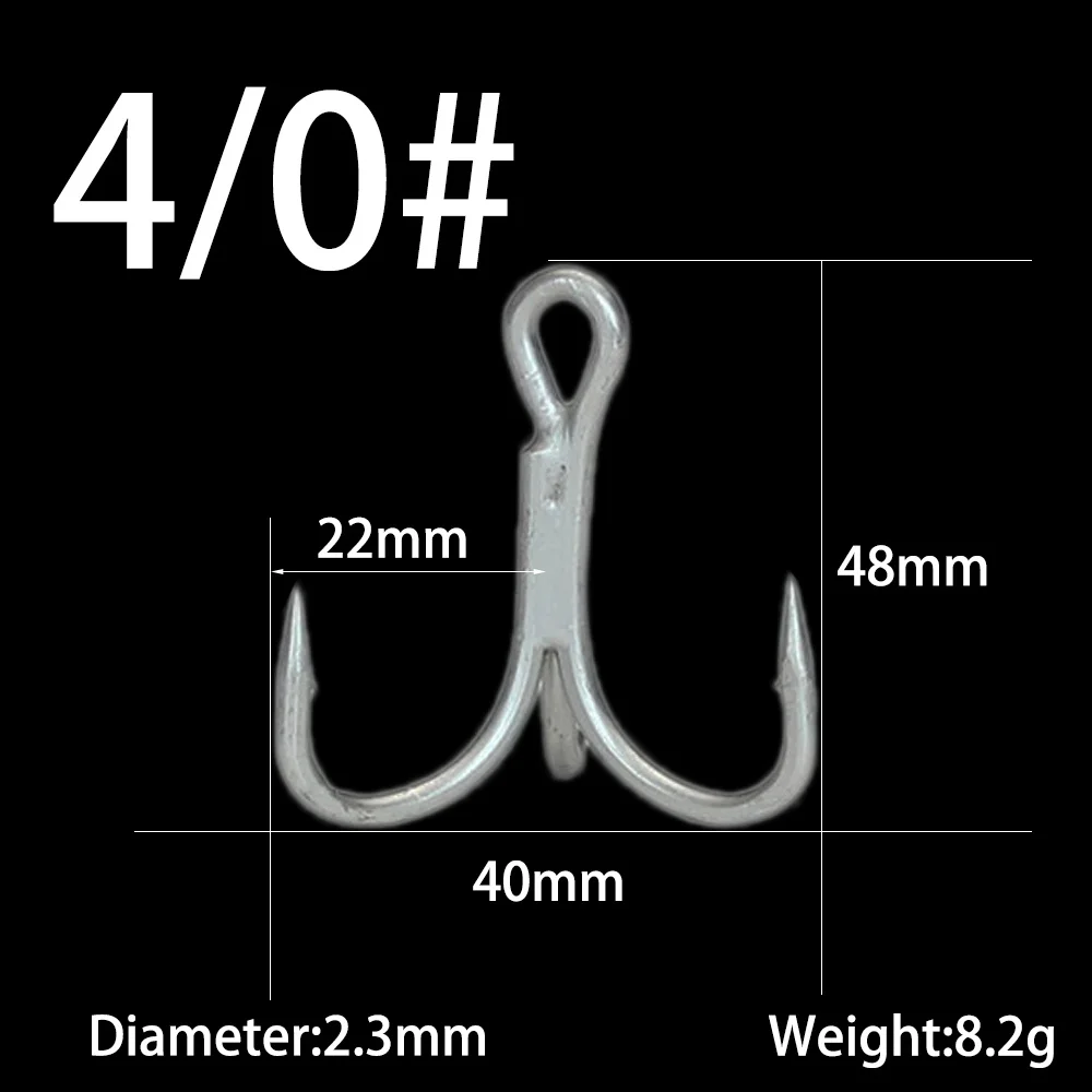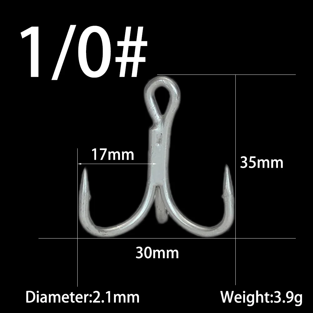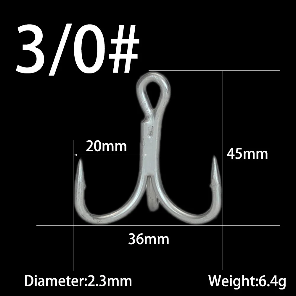 10 pçs/lote Gancho Agudo Mais Grosso Puxar Forte 3/0 # 2/0 # 1/0 # Ganchos de pesca triplos dobrados redondos de aço de alto carbono para peixes grandes