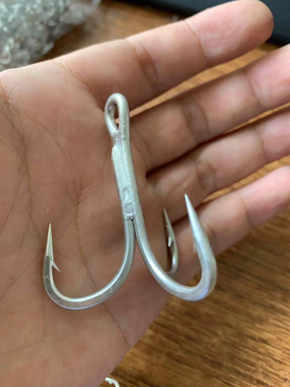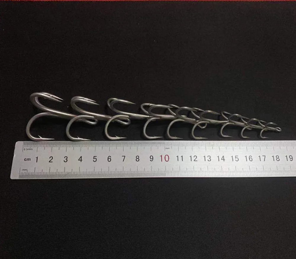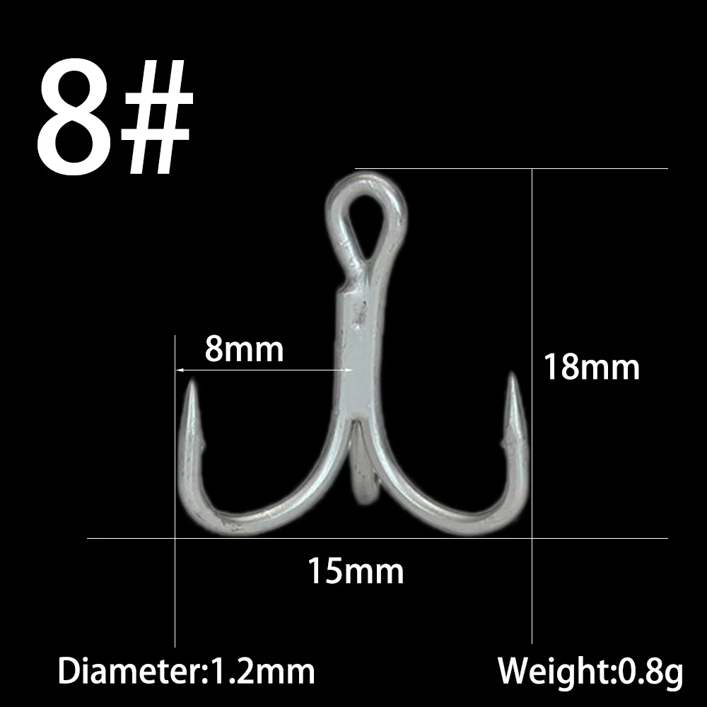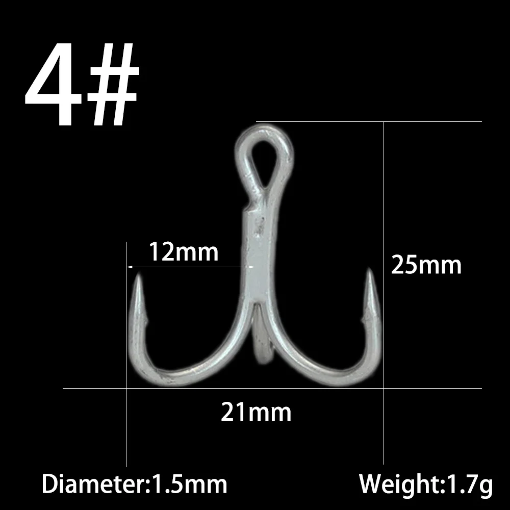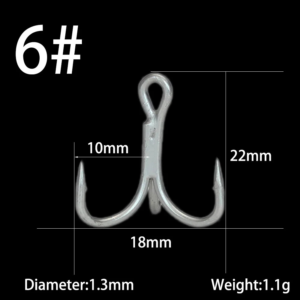 10 pçs/lote Gancho Agudo Mais Grosso Puxar Forte 3/0 # 2/0 # 1/0 # Ganchos de pesca triplos dobrados redondos de aço de alto carbono para peixes grandes