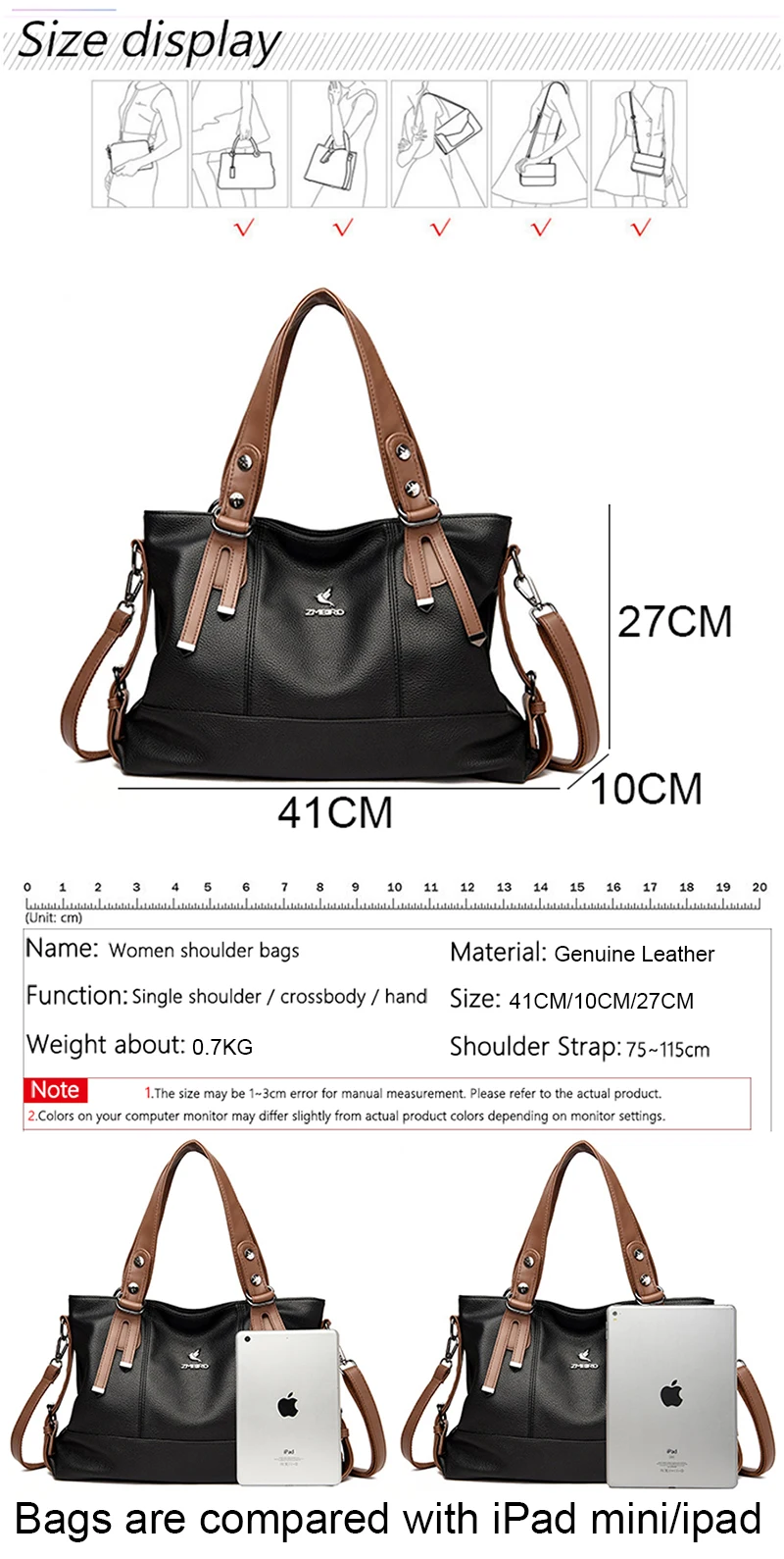 - > 100% bolsa de couro de vaca feminina bolsa de ombro de couro genuíno natural de alta qualidade crossbody grande capacidade saco do mensageiro