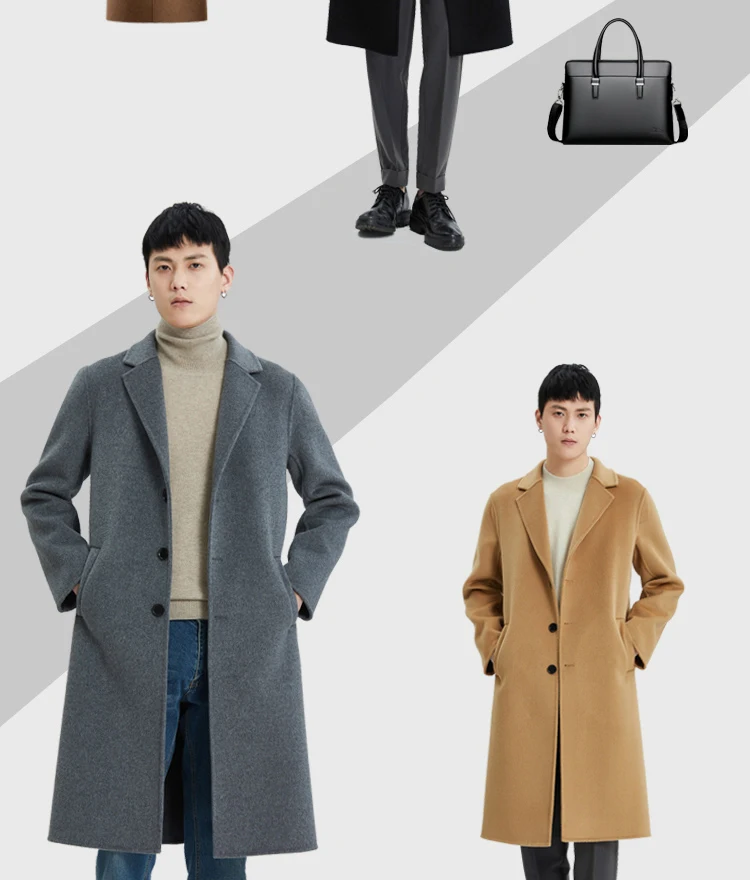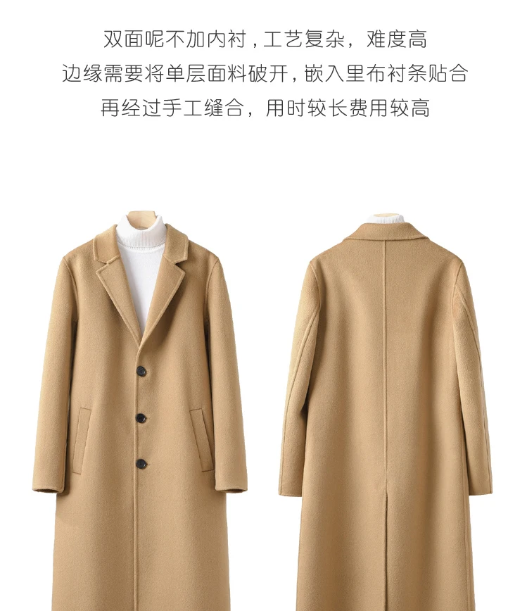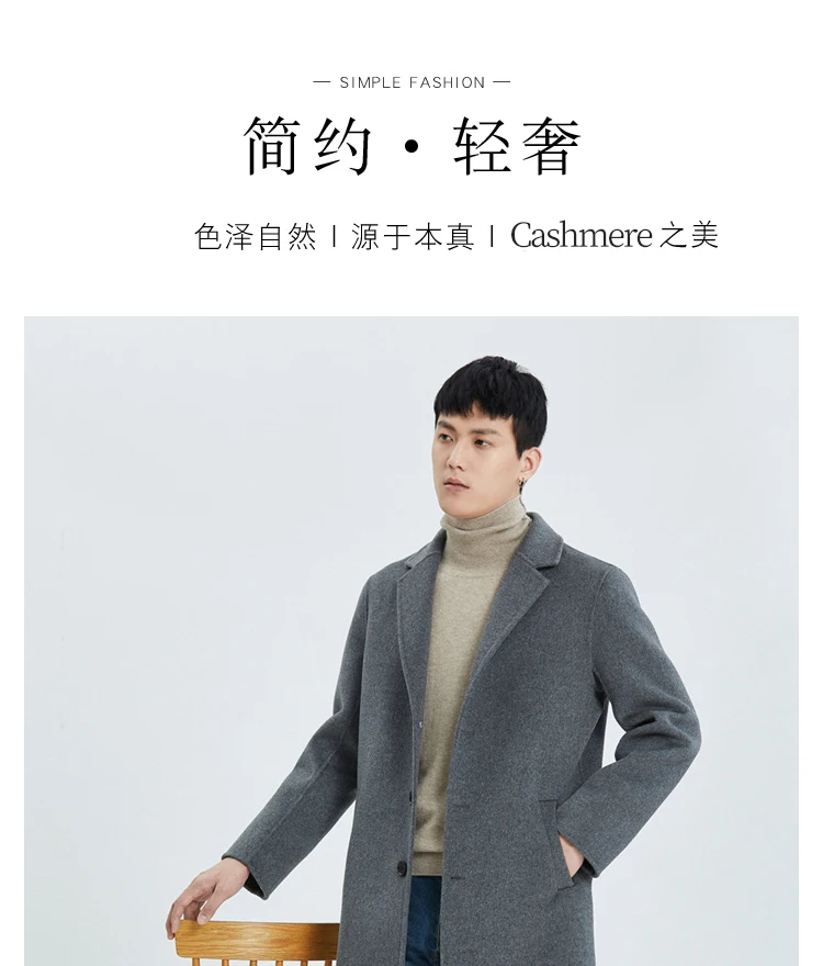 - > 100% jaqueta de caxemira masculina outono e inverno negócios estilo longo jaqueta casual com temperamento