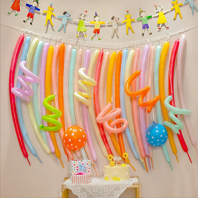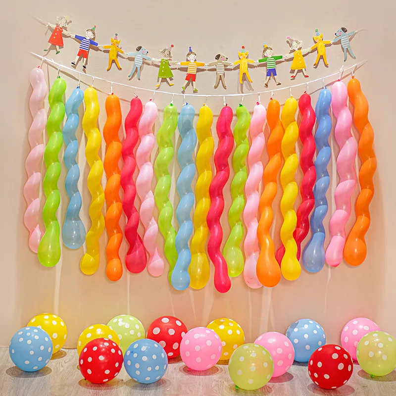 100 pçs balão tira longa estilo espiral cor látex reunião festa de aniversário decoração de casamento design de balão com inflador
