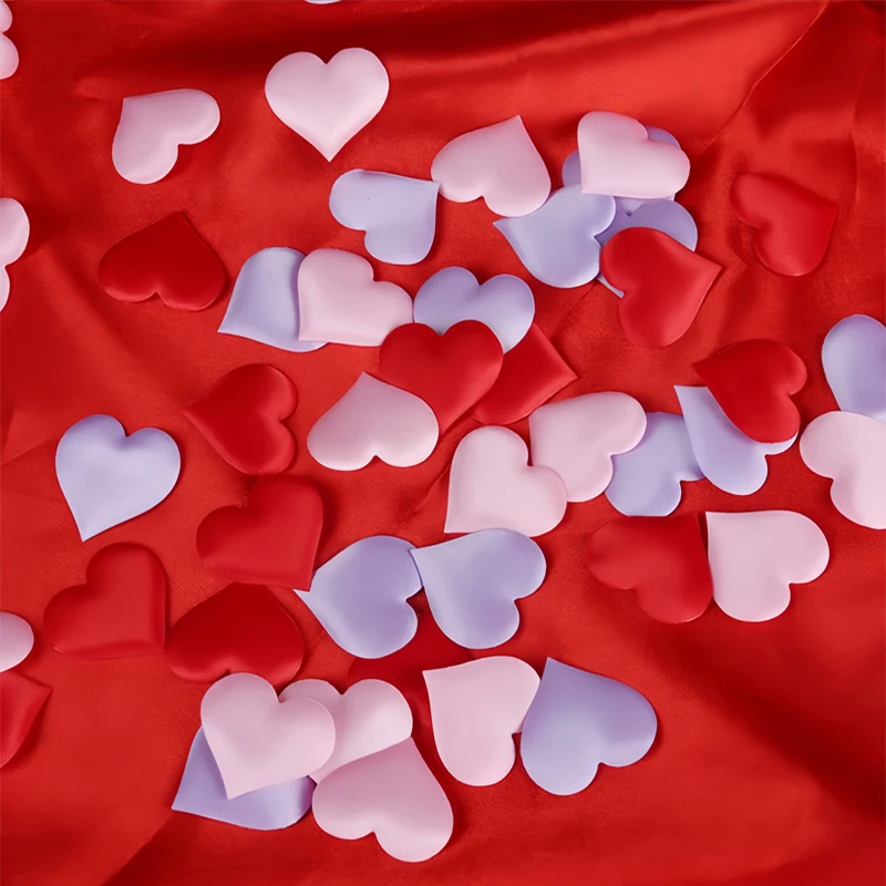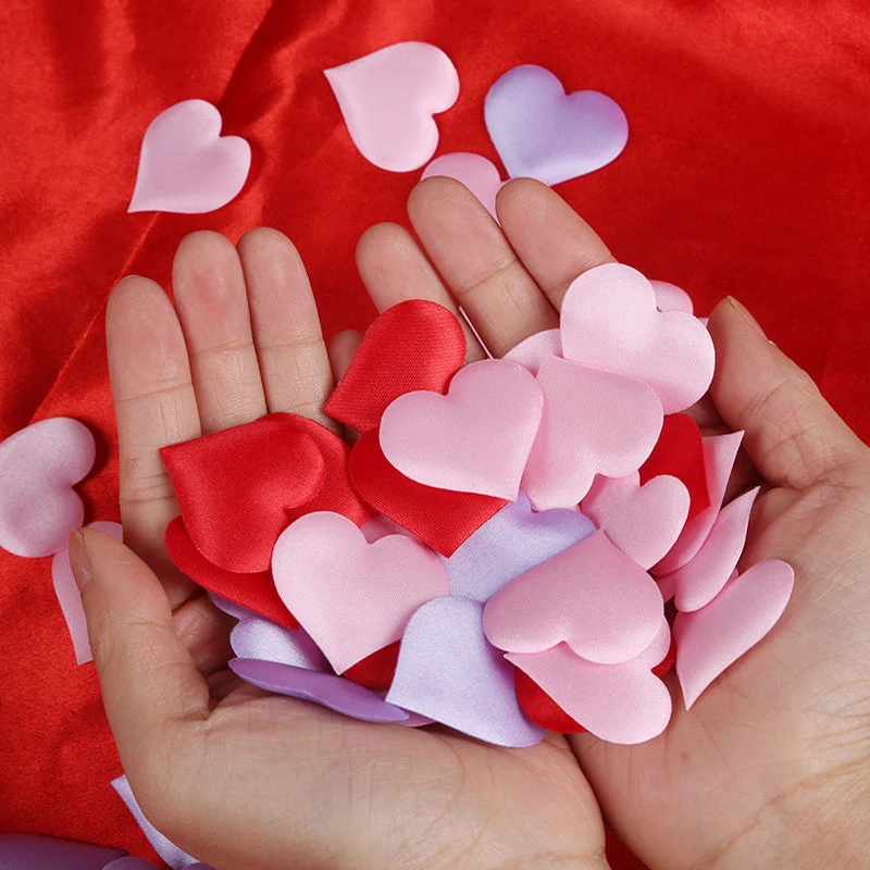 100 Peças de Confete Romântico em Forma de Coração de Cetim para Casamento, Decoração de Mesa e Cama, Pétalas para o Dia dos Namorados, Decoração de Festa de Casamento