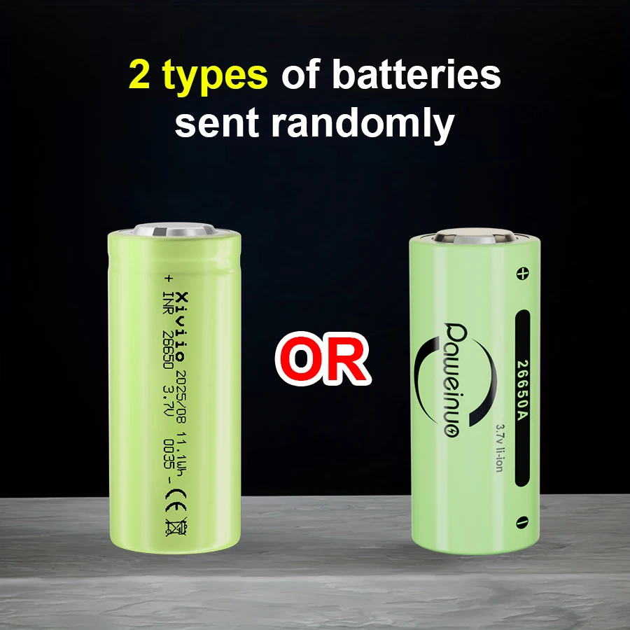 Por favor, veja a imagem abaixo.Enviaremos aleatoriamente baterias 18650 e baterias 26650 de acordo com as fotos