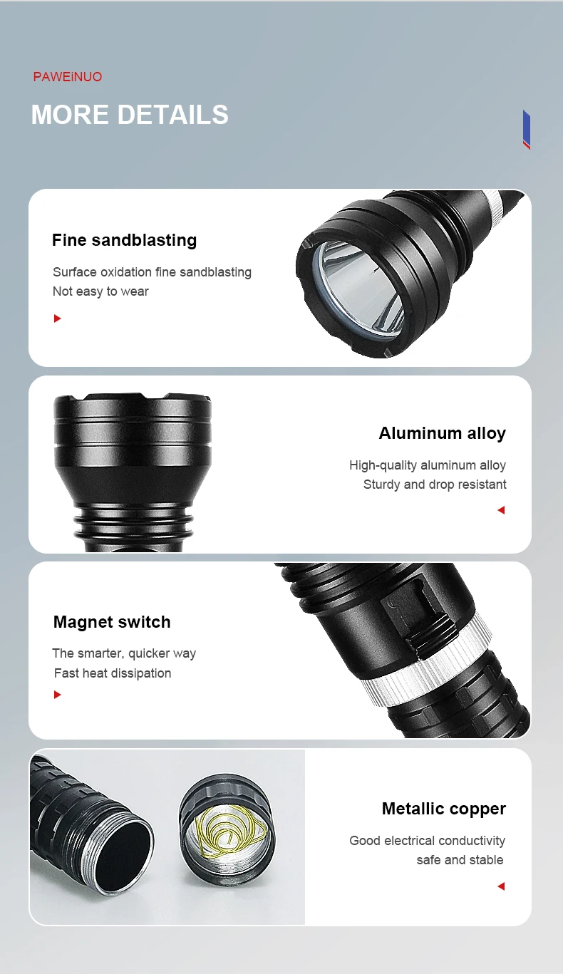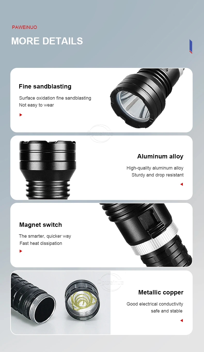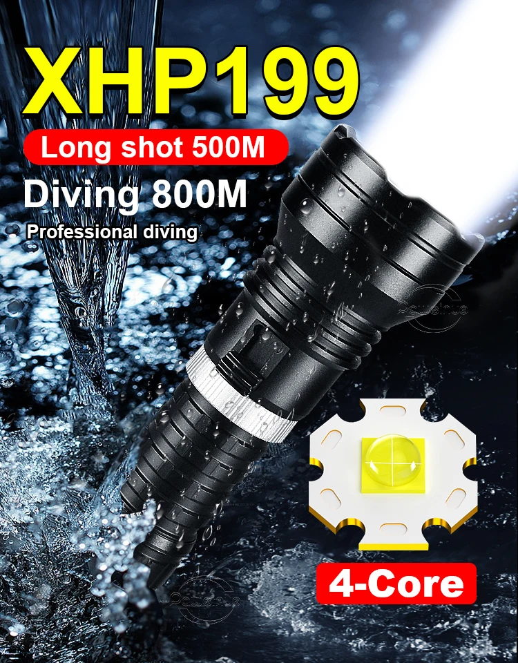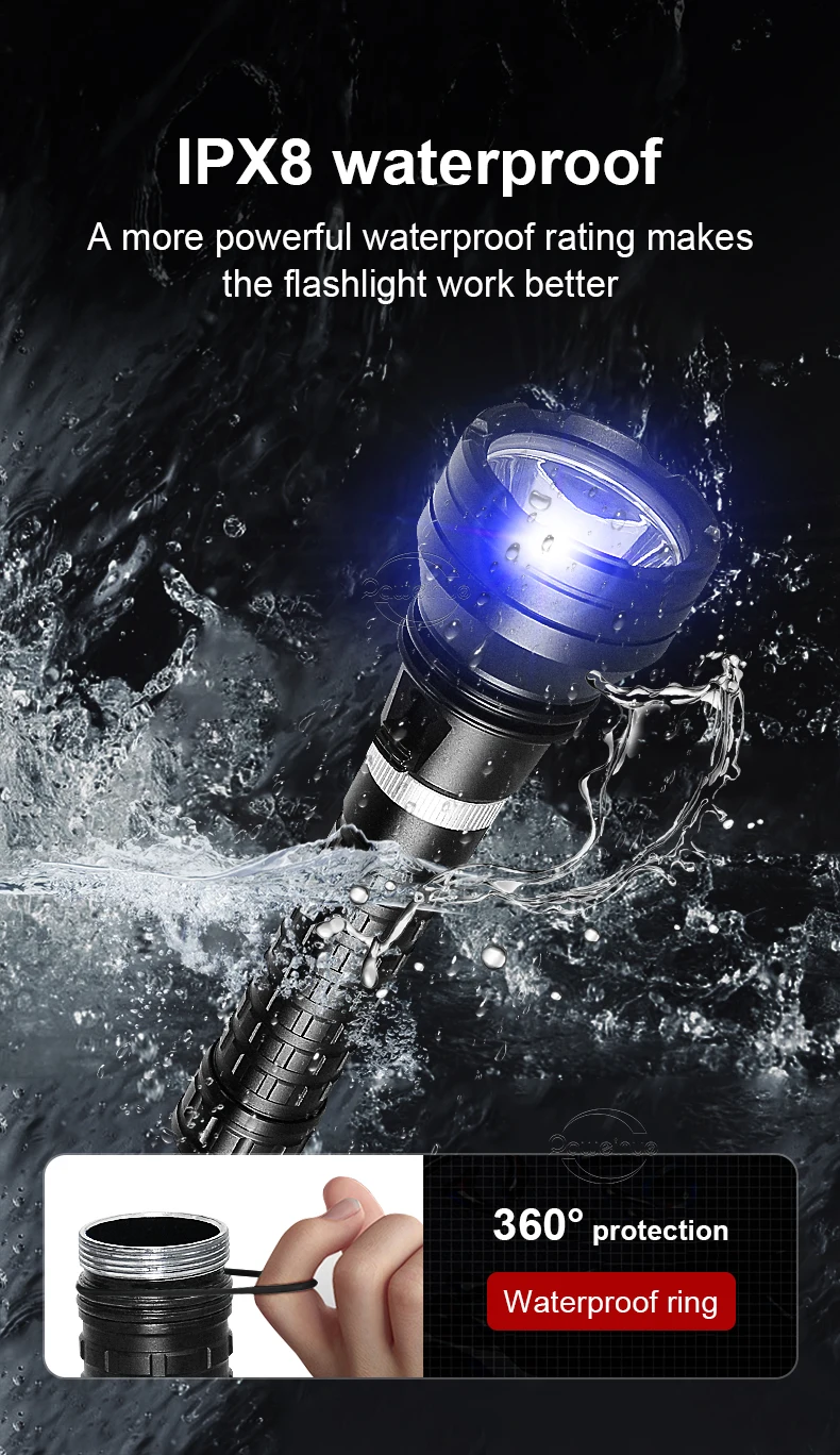 4.Lanterna de mergulho LED profissional de grau IPX8 à prova d'água, você pode aproveitar o tempo subaquático com confiança.