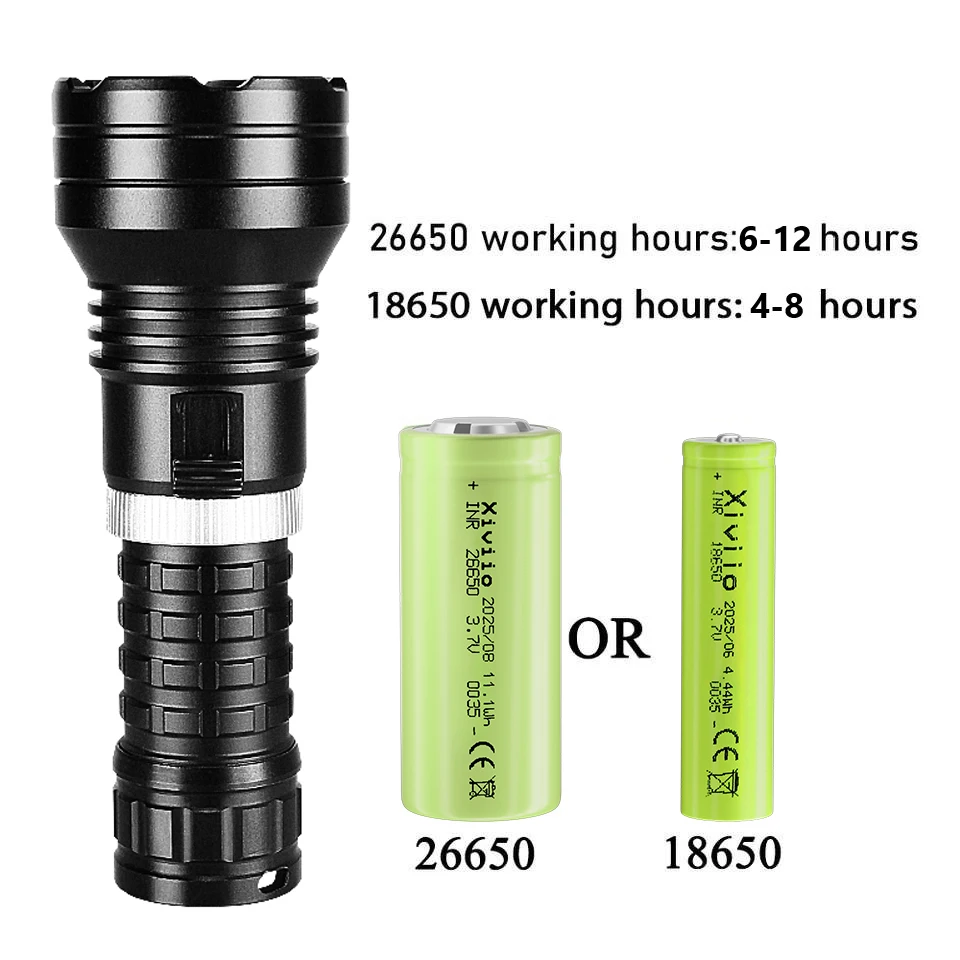 2.Usando 2*18650 ou 2*26650 baterias recarregáveis, a vida útil da bateria pode ser de até 10 horas.