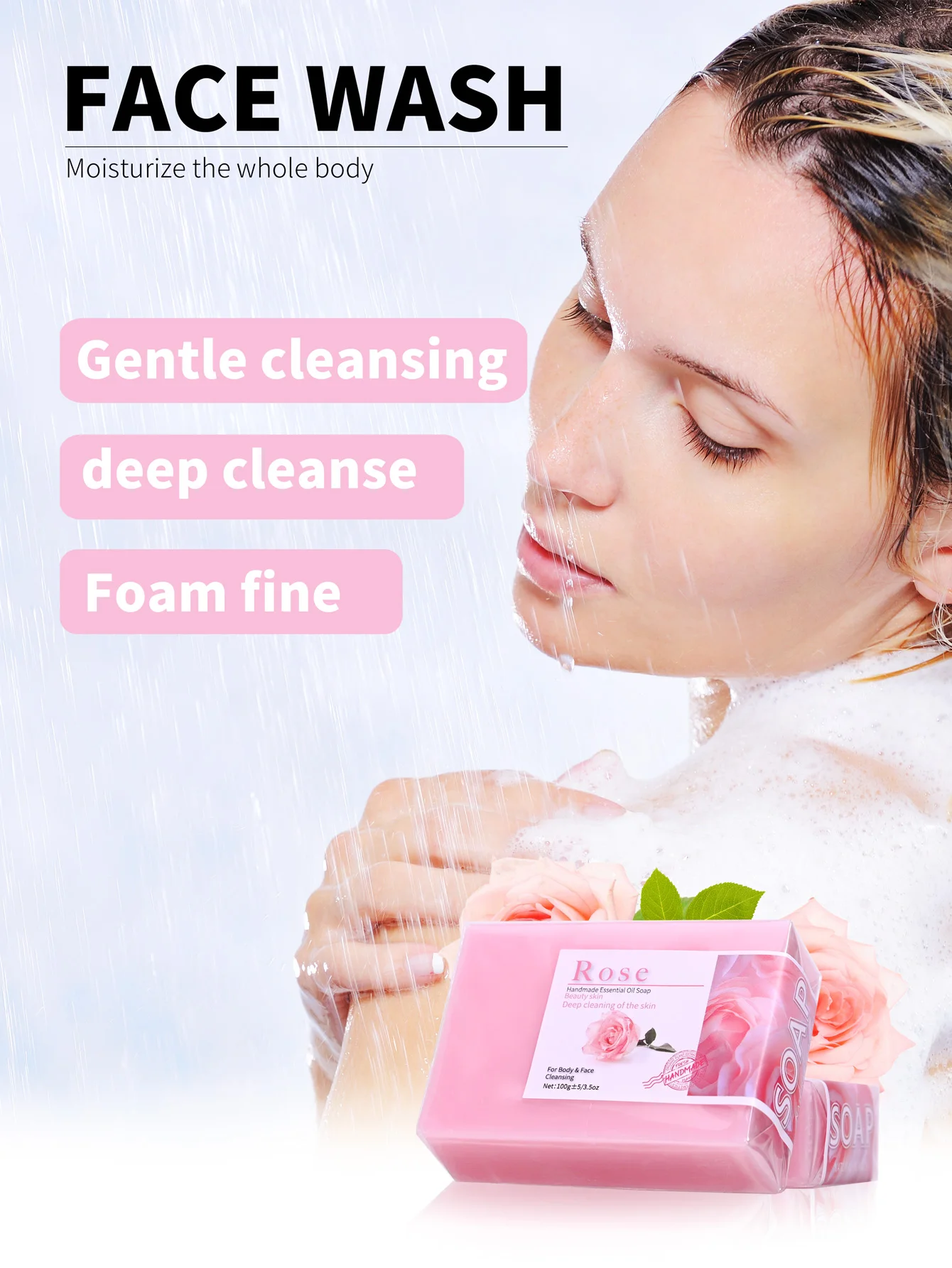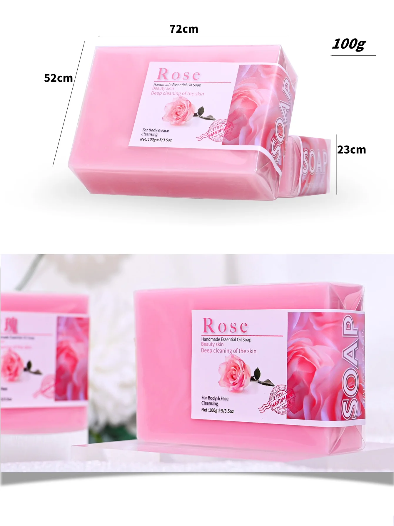 100g produtos de venda quente óleo de rosa artesanal glicerina sabão barra corpo rosto sabão limpa profundamente clareamento sabão com lavanda