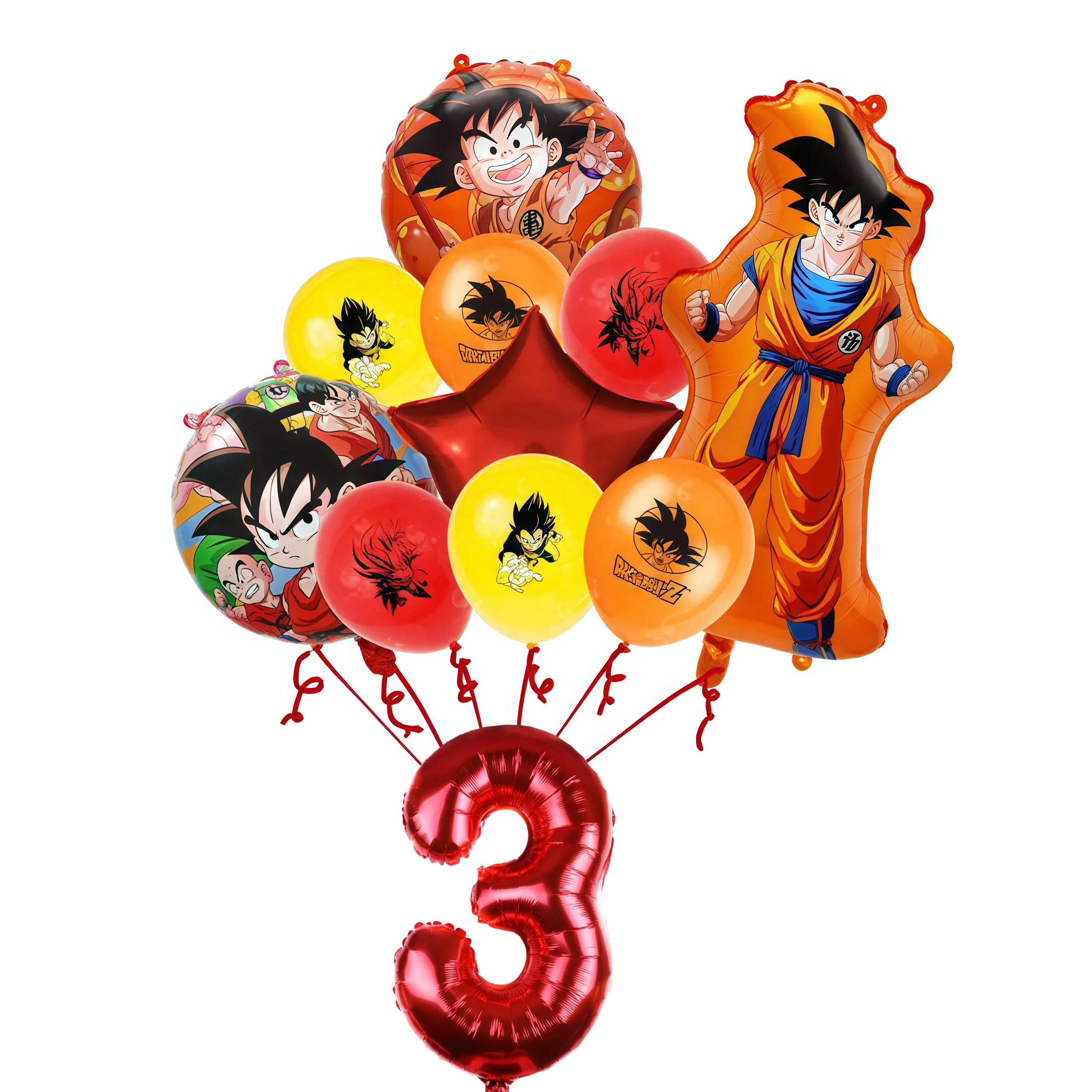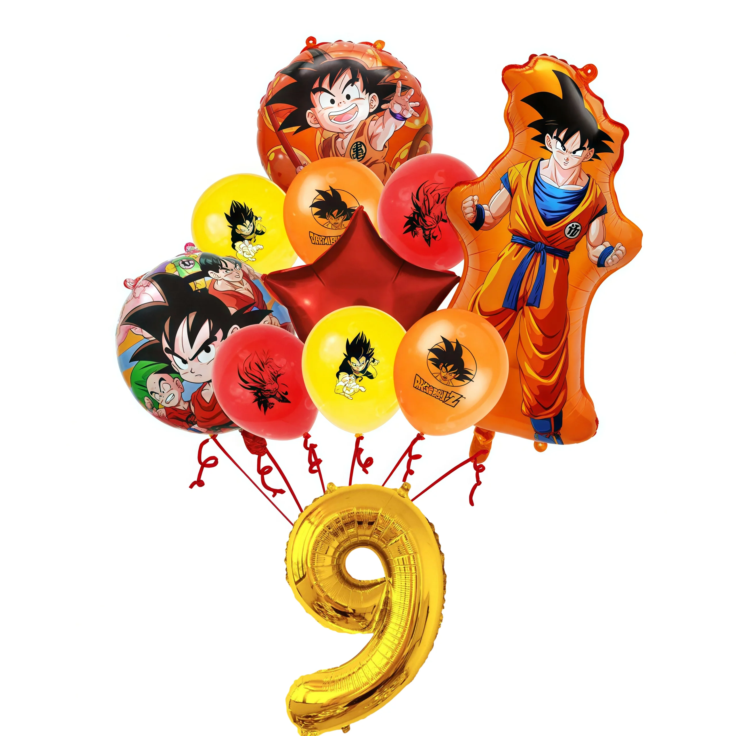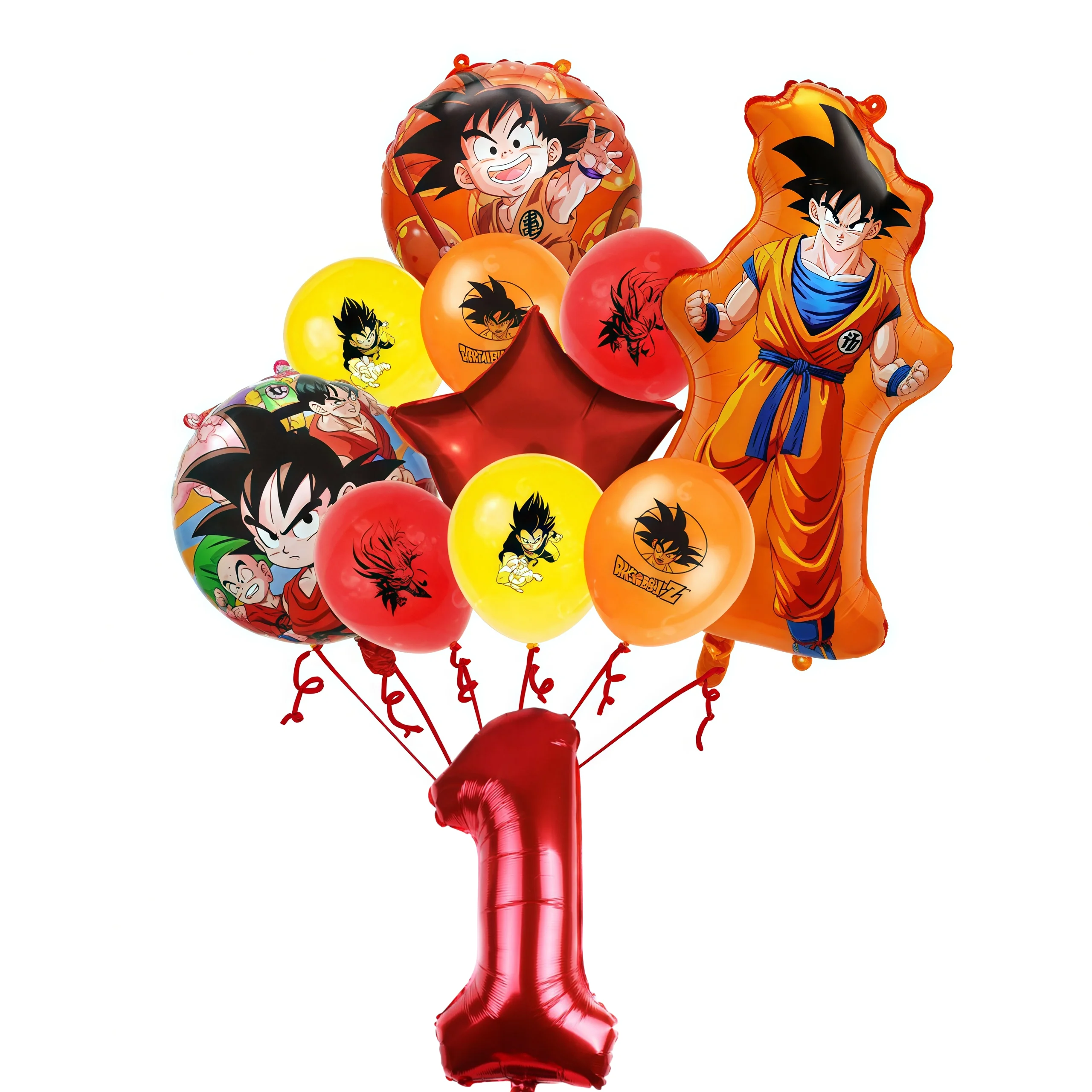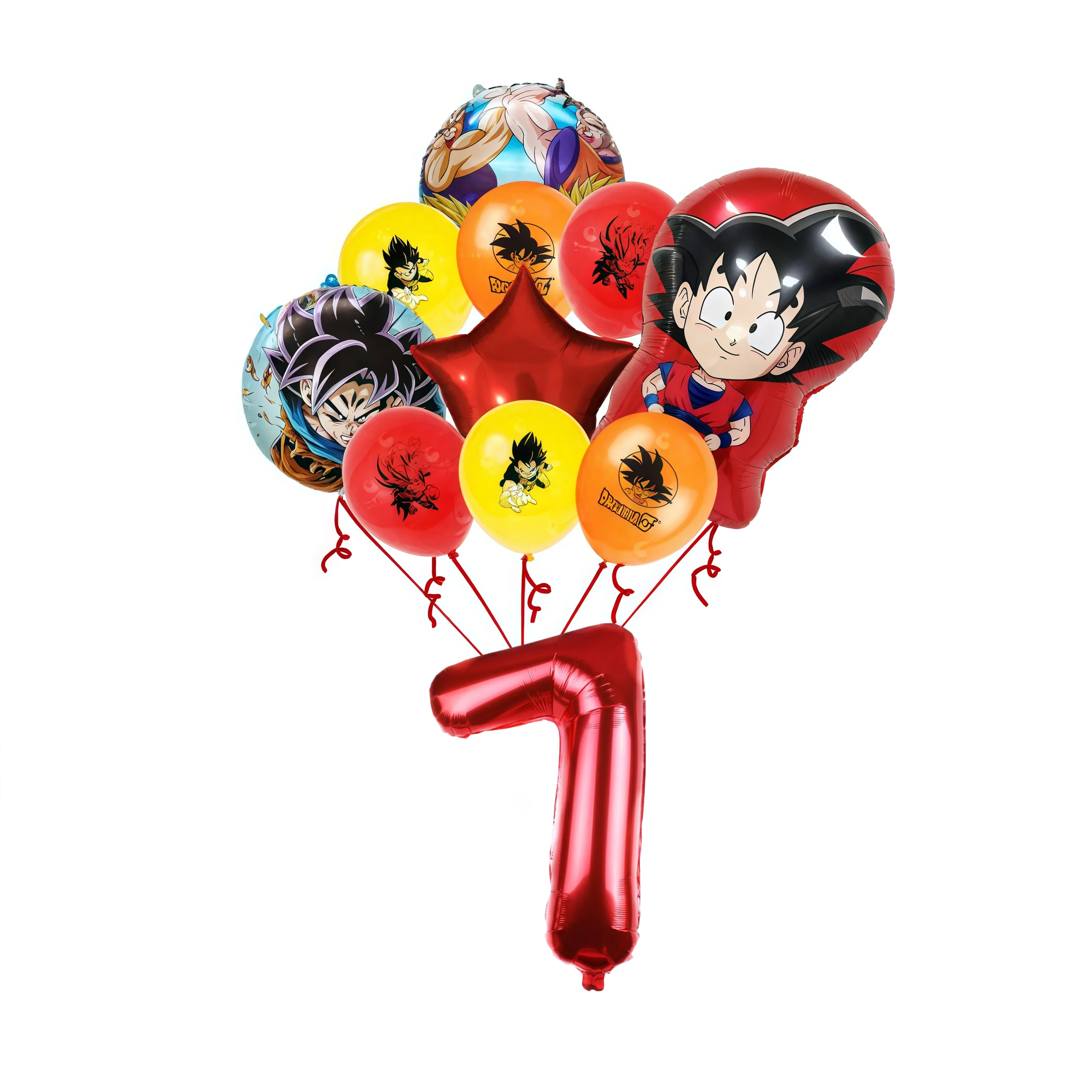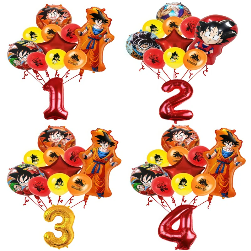 11 pçs dragoned ball goku figura decoração de aniversário látex folha de alumínio balão digital mix e esteira conjunto crianças fontes de festa brinquedos