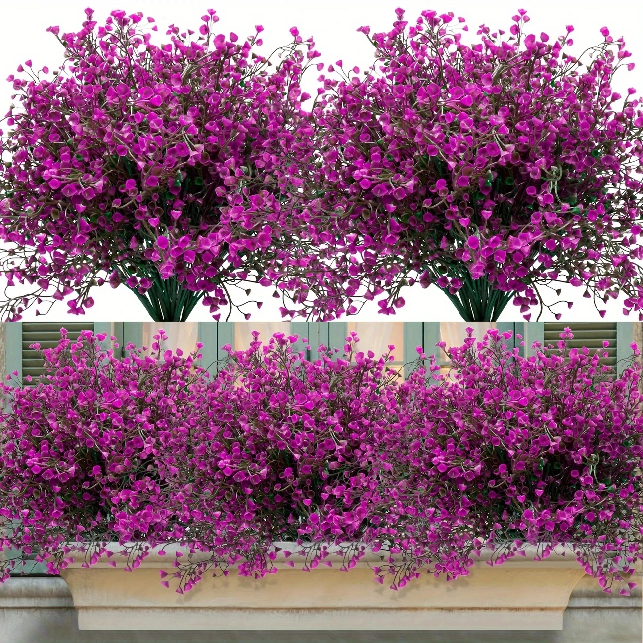 12 cachos de flores artificiais ao ar livre, arbustos de plástico resistentes a UV, plantas decorativas para afiação de jardim, caixas de janela, greene falso