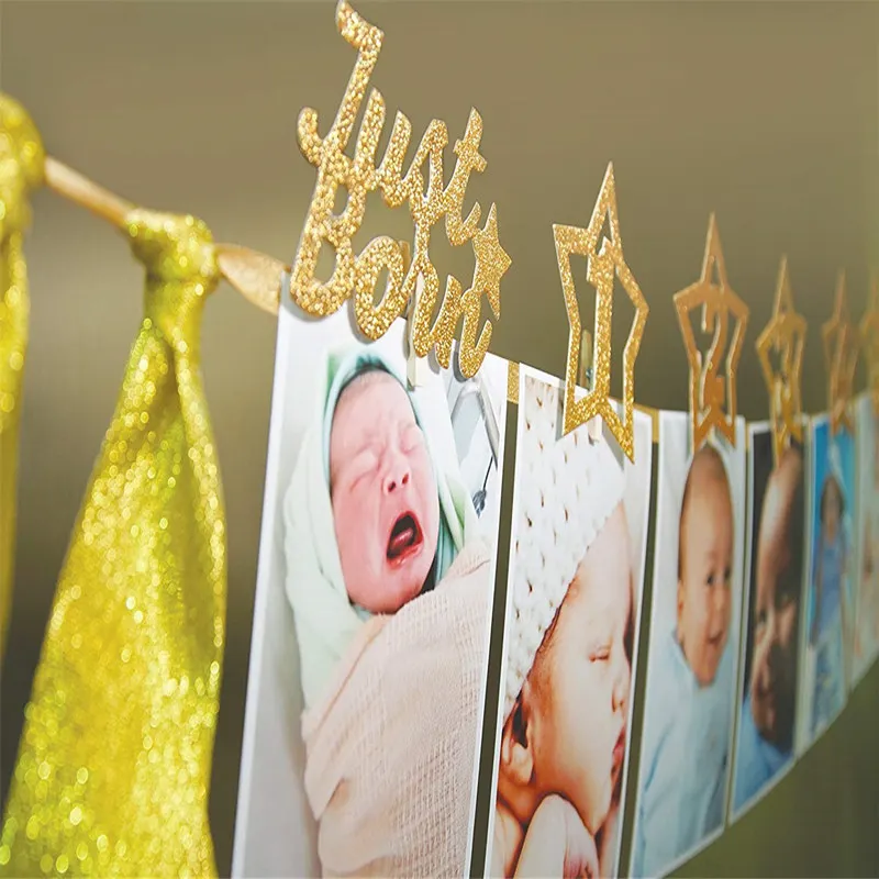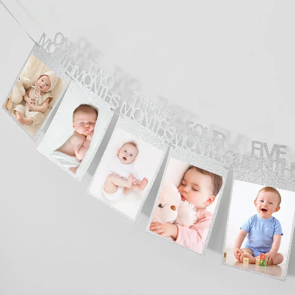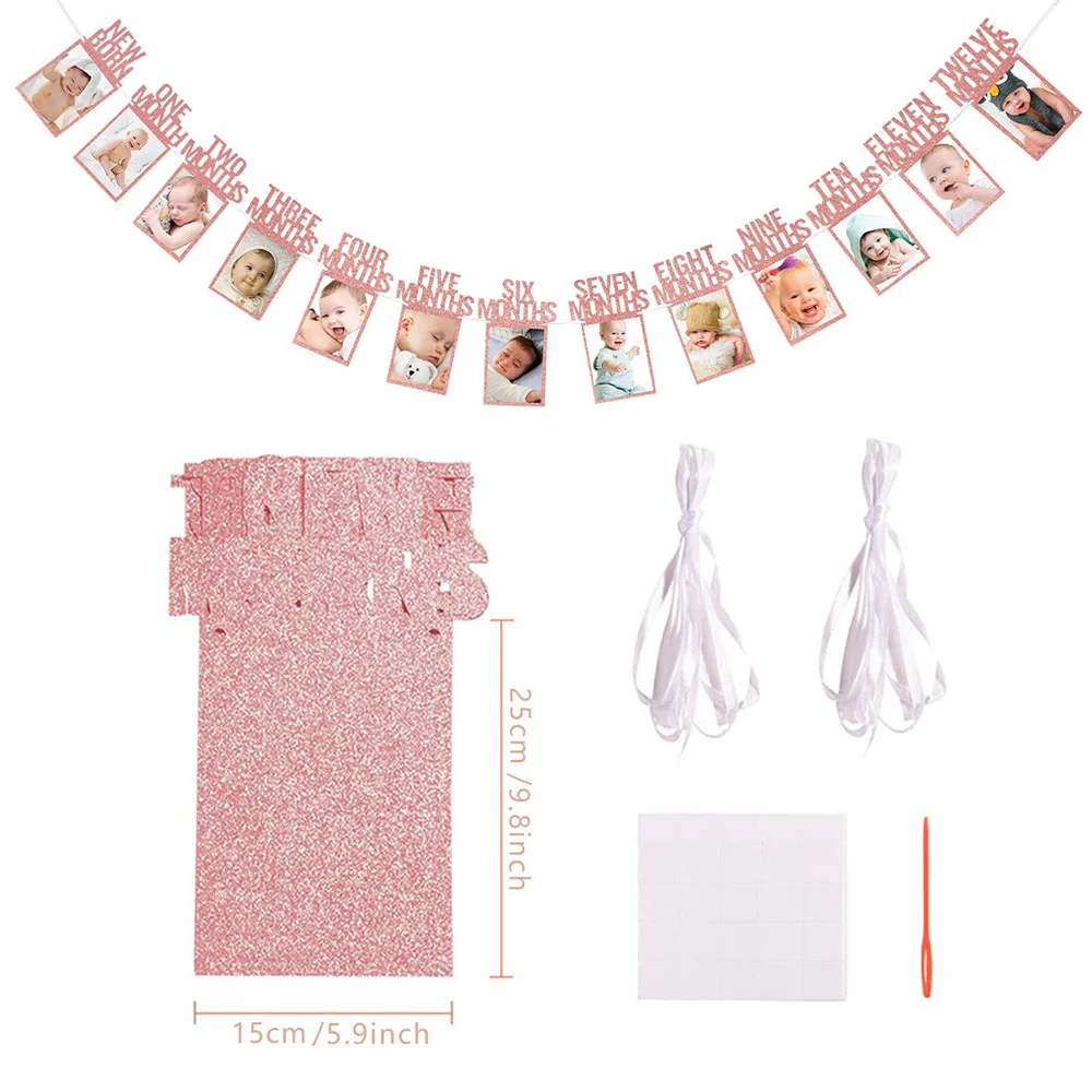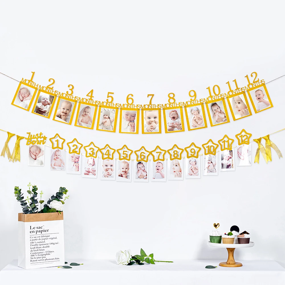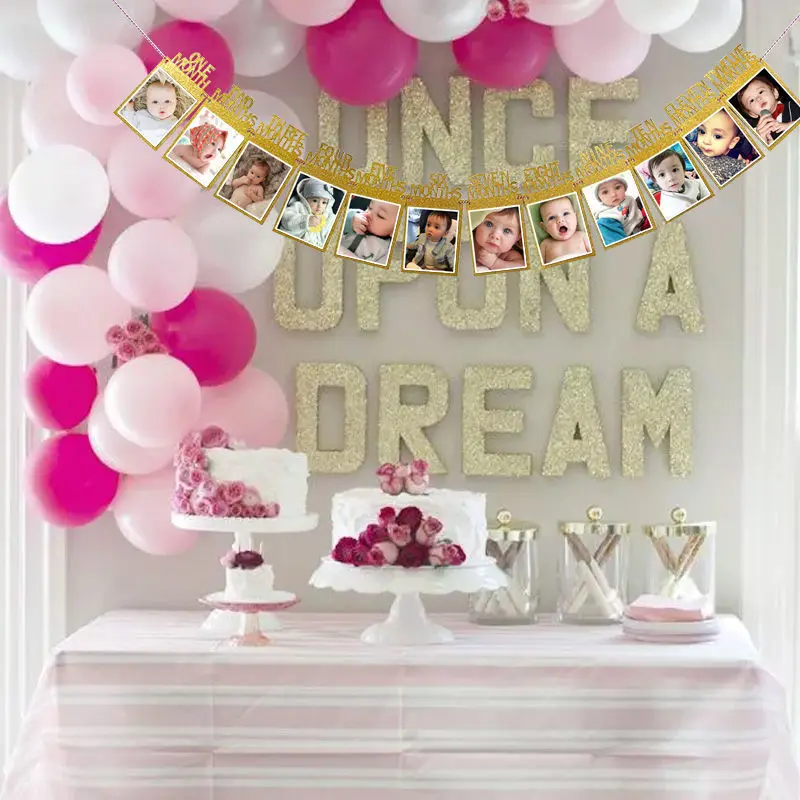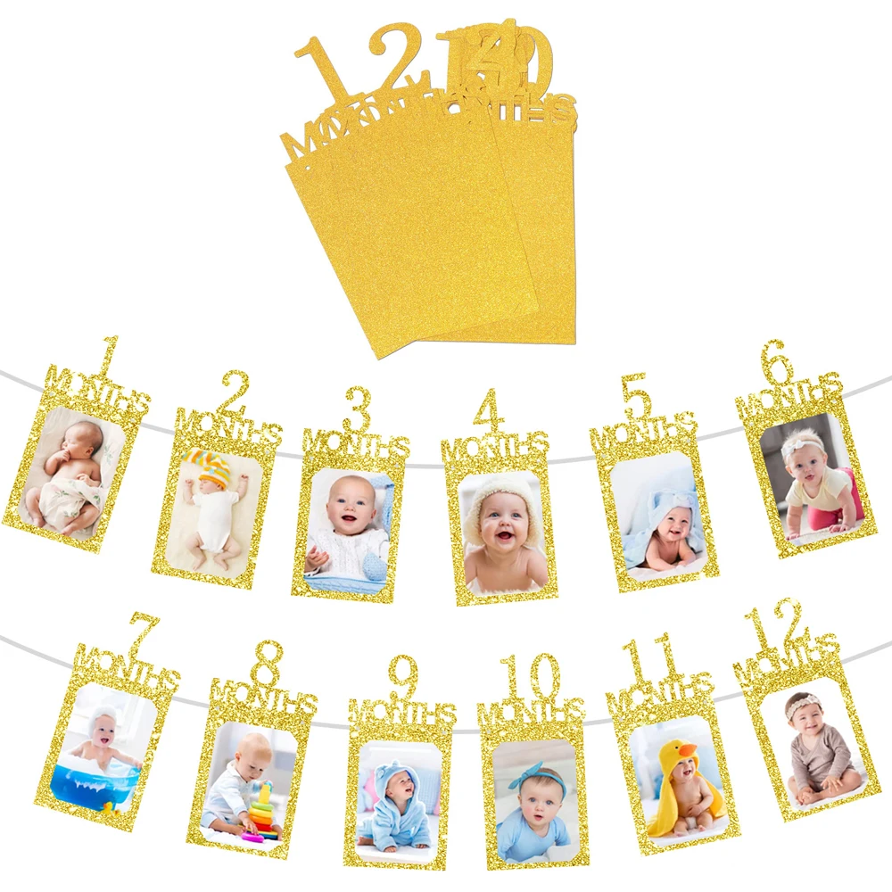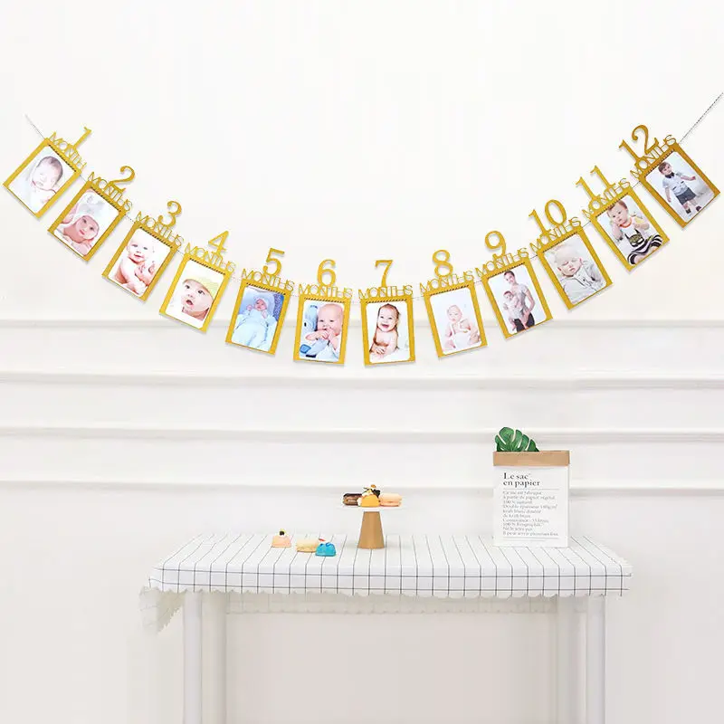 12 meses moldura de foto banner recém-nascido guirlanda decorações de festa de primeiro aniversário crianças bebê menino menina meu primeiro ano suprimentos de festa