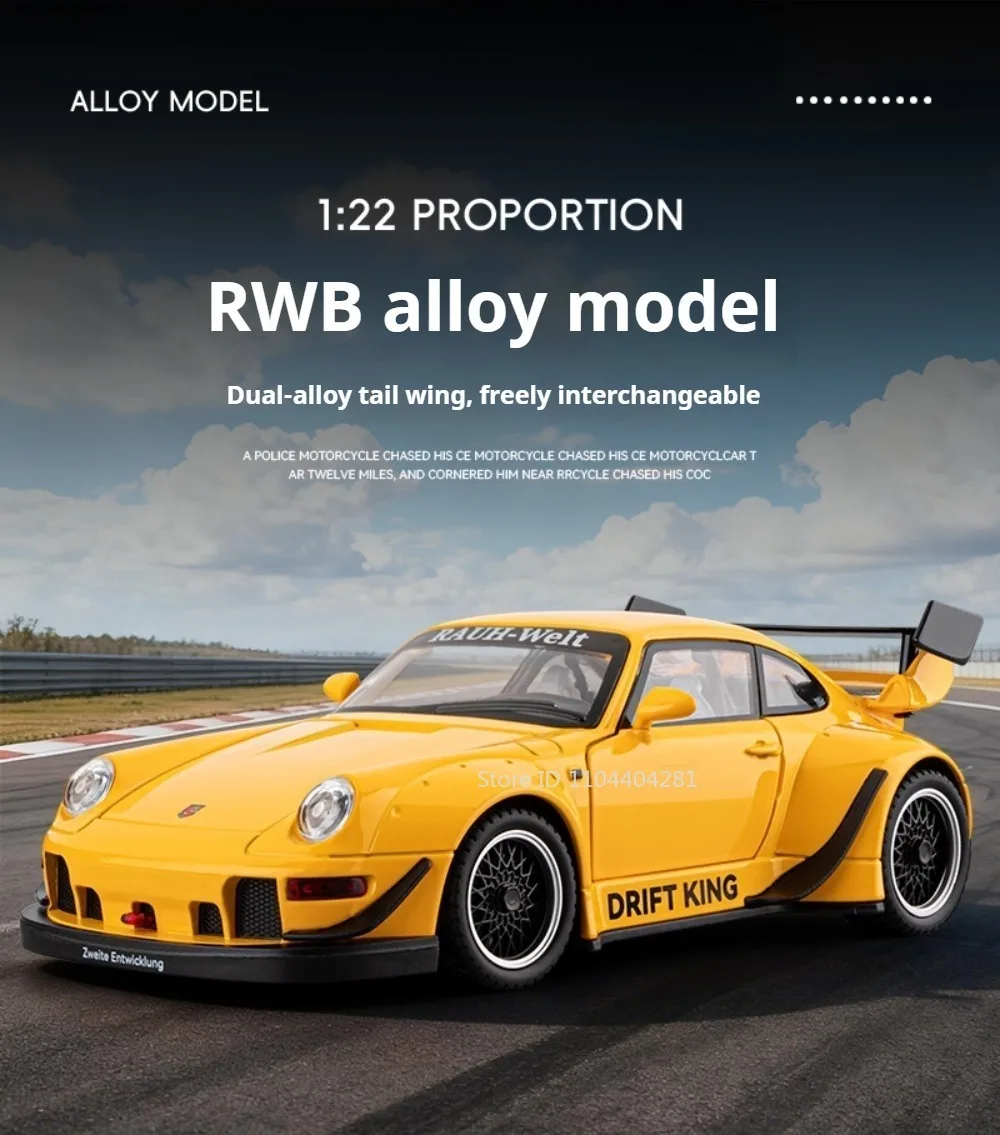 1:22 rwb 993 na1 modelos de carros esportivos em miniatura, brinquedos de liga fundida, portas abertas, luz de som, puxar para trás, veículos, ornamentos colecionáveis