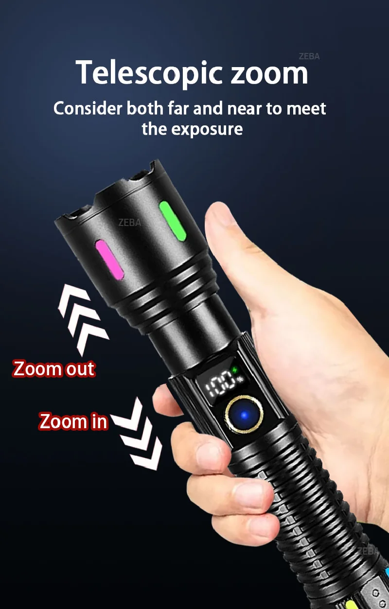 Feature26: 100000LM Ultra Powerful Flashlight Zoom USB Rechargeable Lantern Outdoor Camping Torch