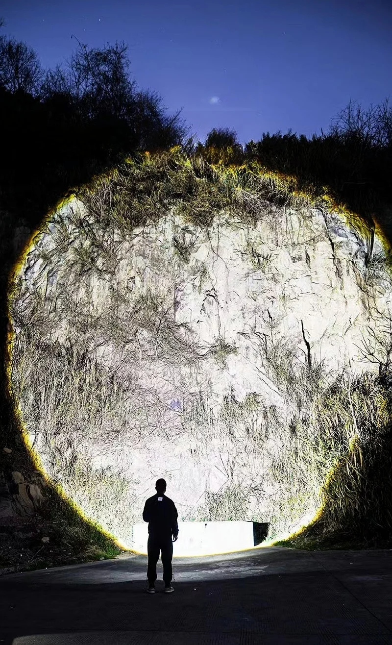 » Alto brilho - Equipado com mechas LED de alta potência e grande abertura, proporcionando luz brilhante e estável.A melhor distância de iluminação pode chegar a 4.500 metros, o que é adequado para exploração ao ar livre, viagens noturnas, resgate de emergência e outras cenas.