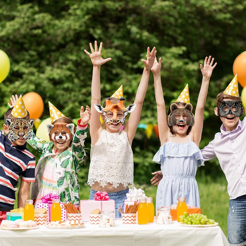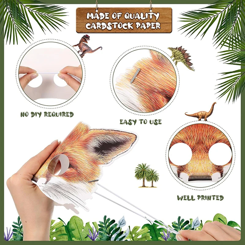 16 pçs selva animal máscara crianças festa de aniversário dia das crianças engraçado máscaras de papel criança foto adereços safari tema chá de bebê suprimentos