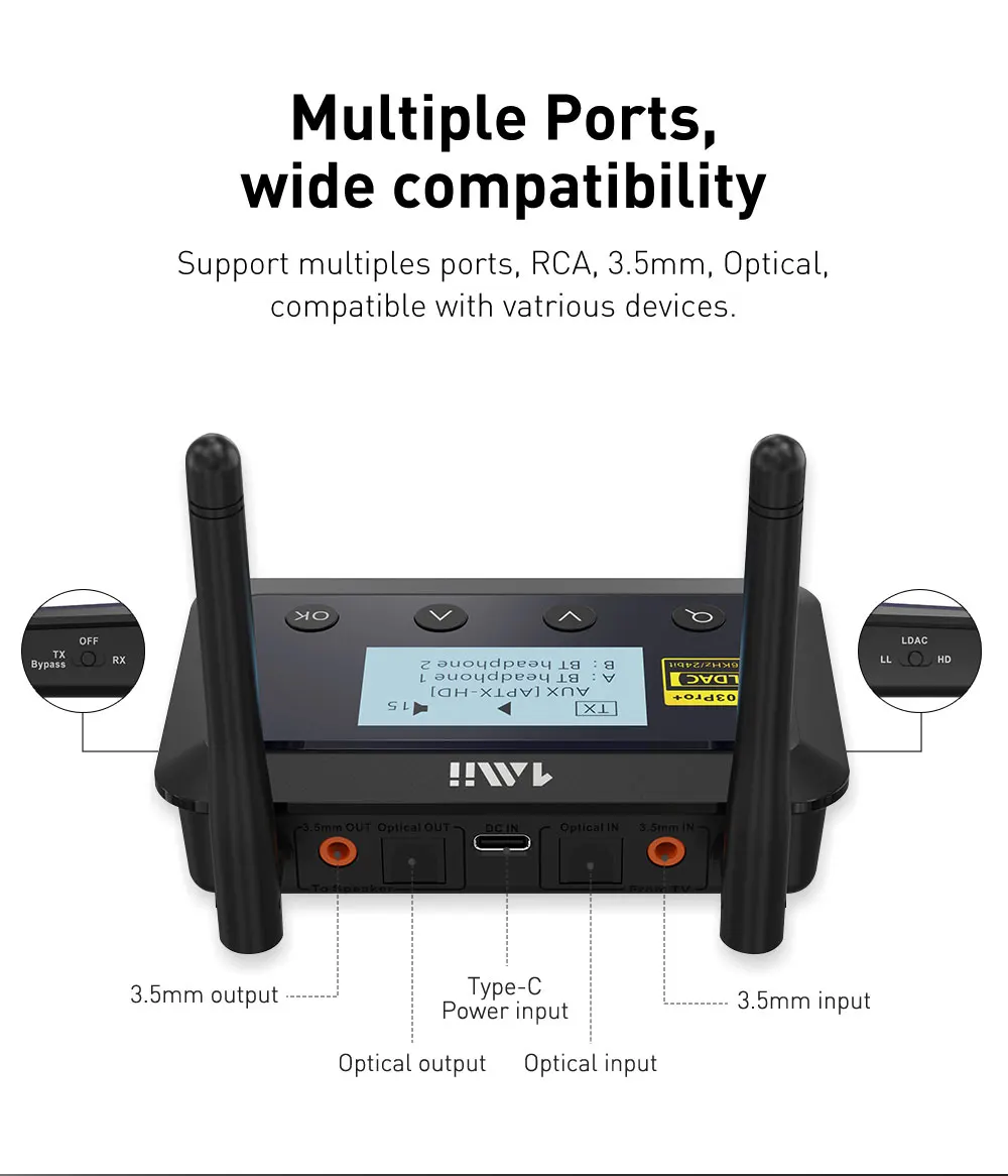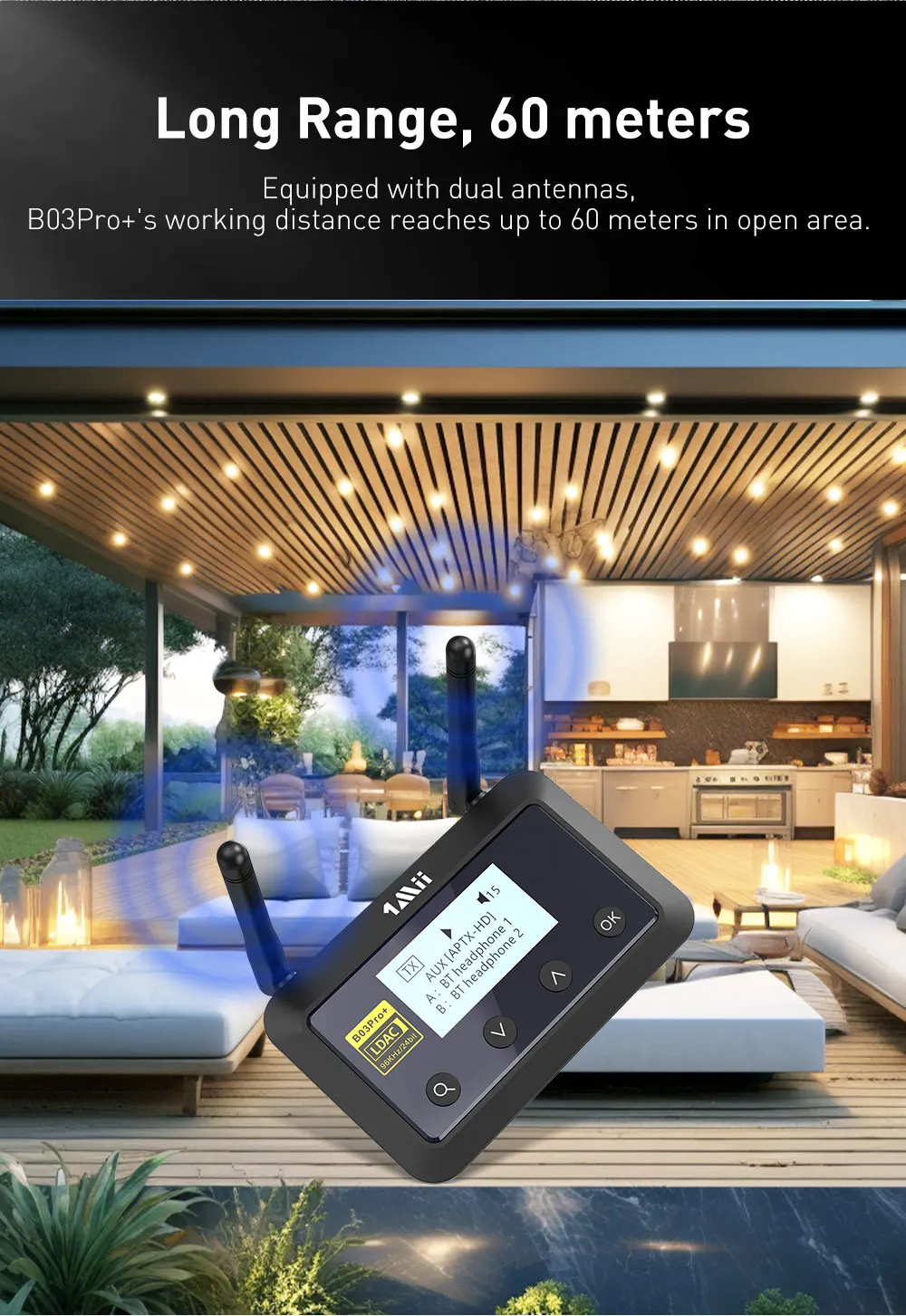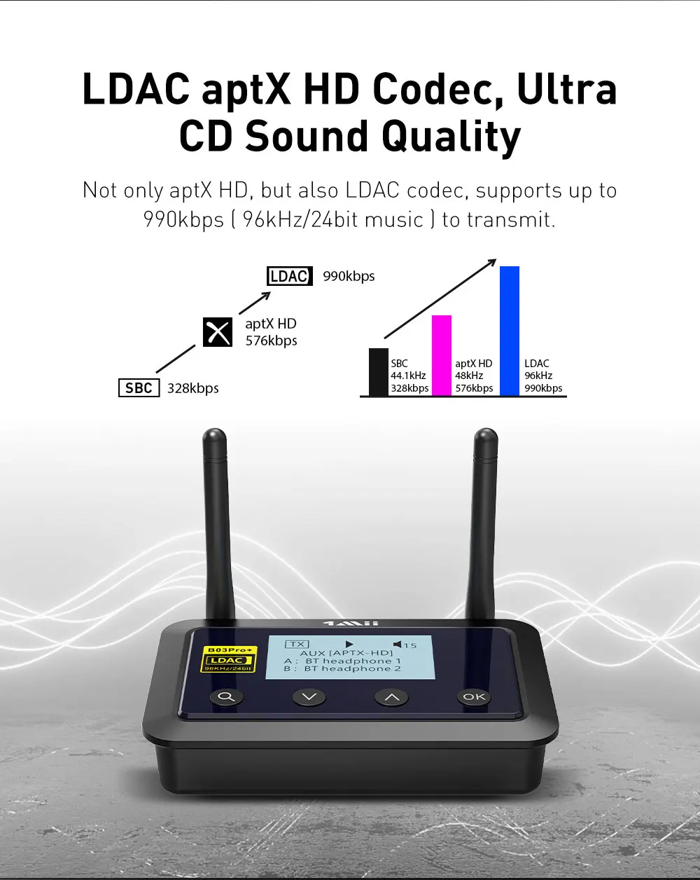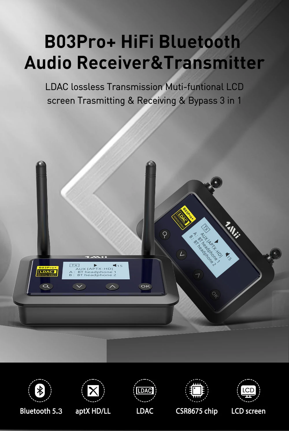 1mii b03pro+ bluetooth 5.0 transmissor receptor de áudio aptx ll hd csr8675 alta fidelidade ldac adaptador bluetooth para tv pc com tela lcd #