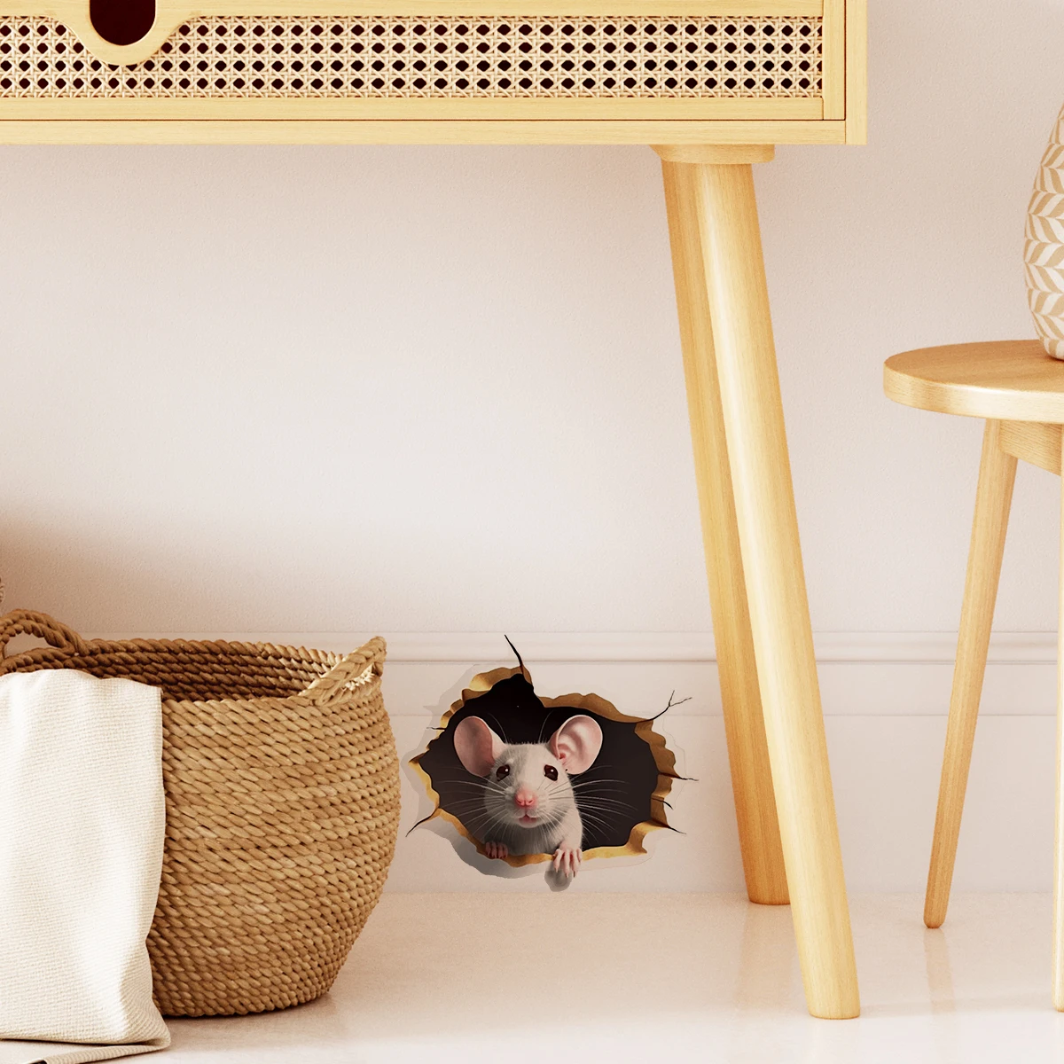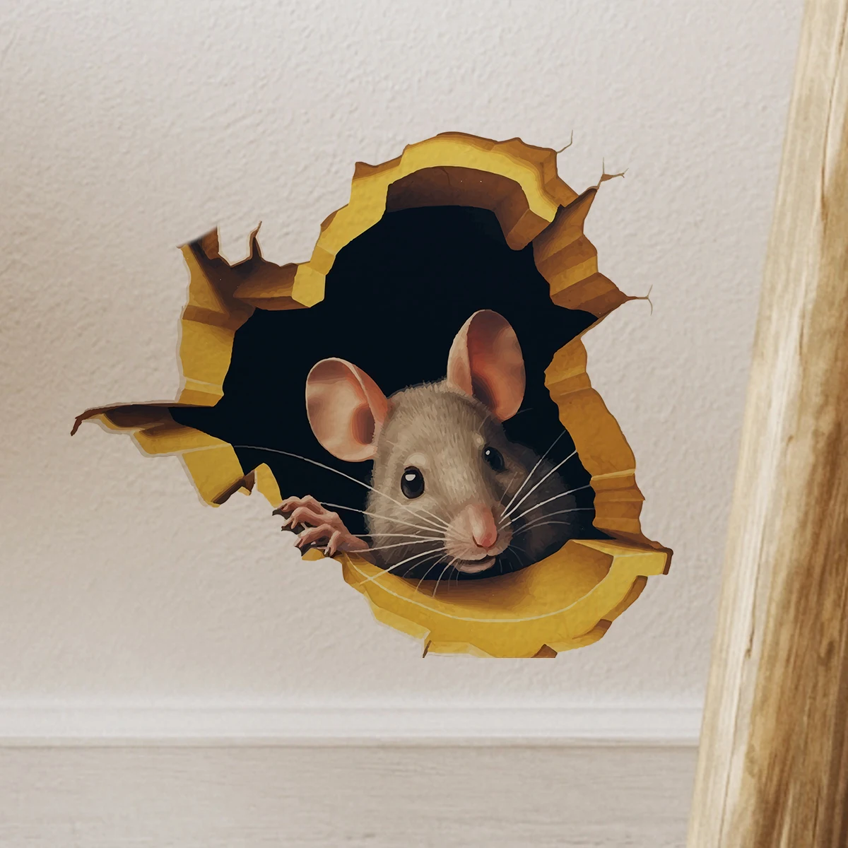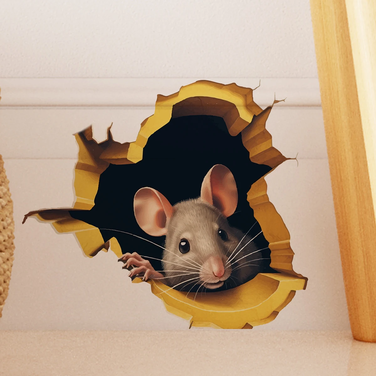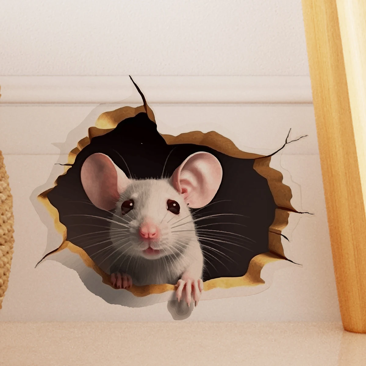1pc efeito 3d personalizado mouse buraco adesivo leitura mouse branco ramo de flor mouse bonito animal aleatório adesivo decoração para casa