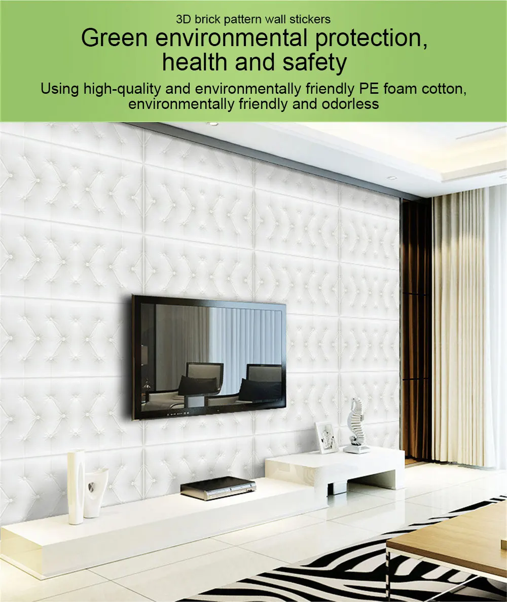 Adesivos de parede com padrão de tijolo 3D, verdes, ecologicamente corretos, saudáveis e seguros