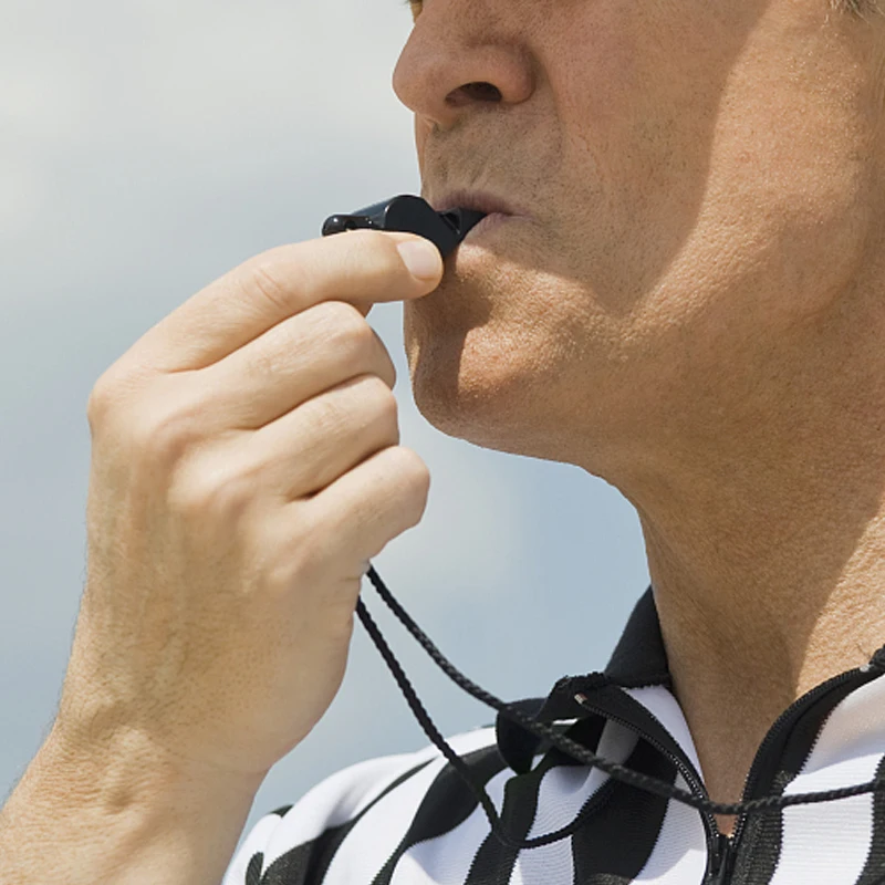 - > 1pc futebol basquete correndo treinamento esportivo árbitro treinador ao ar livre apito cartão de papel embalagem apito com corda pendurada