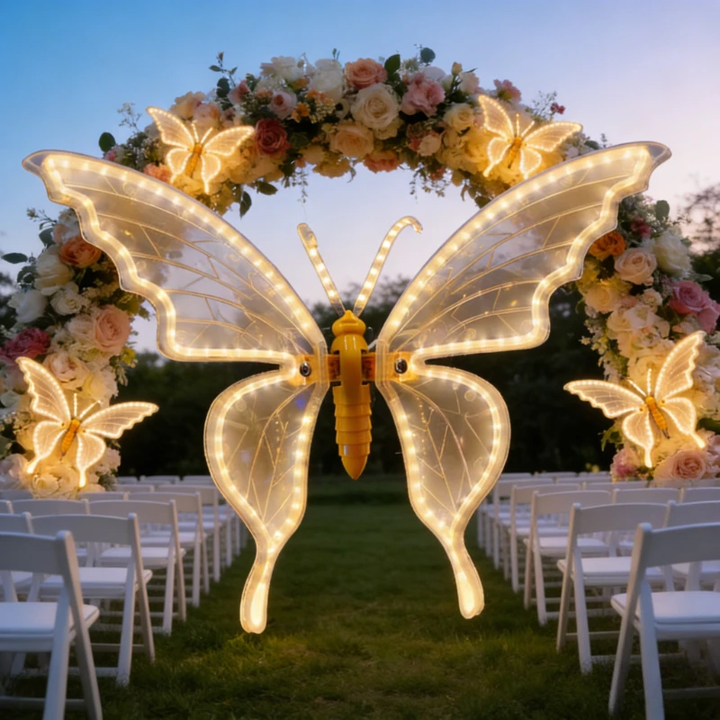 Peça decorativa versátil:Esta luz borboleta é perfeita para eventos, jardins ou como um destaque exclusivo para a casa.