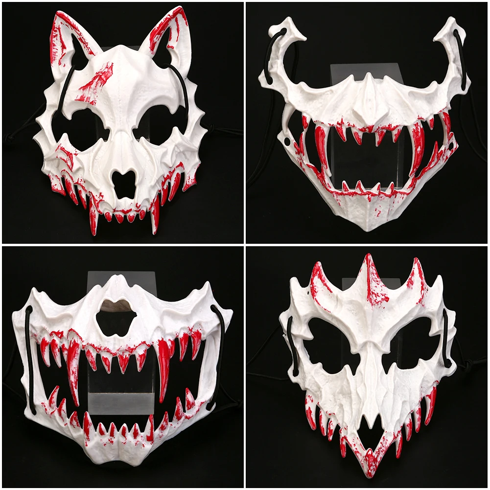 1pc nova máscara de plástico de halloween máscara de meia face cos dragão deus feroz tigre noite garfo tengu homem lobo máscara desempenho máscaras de crânio