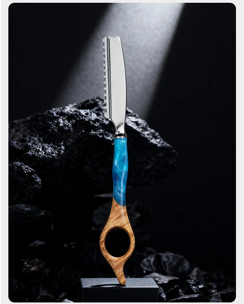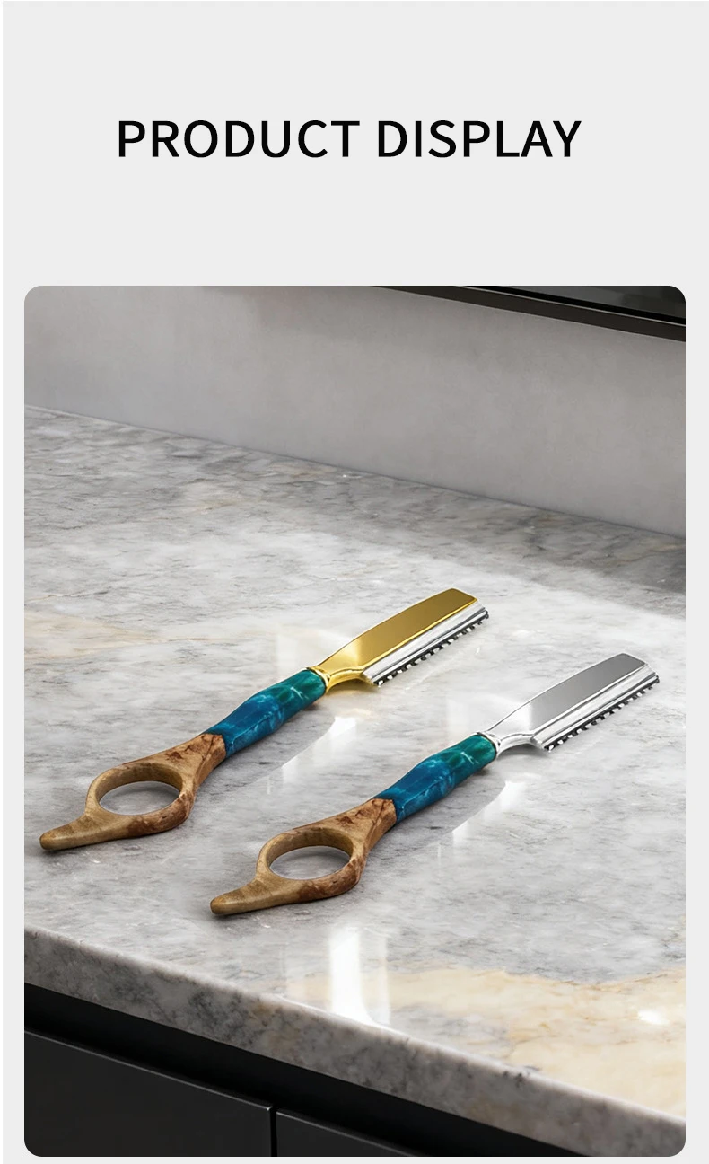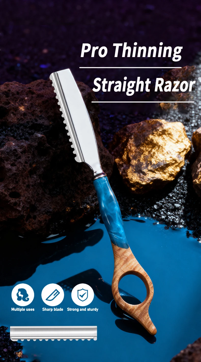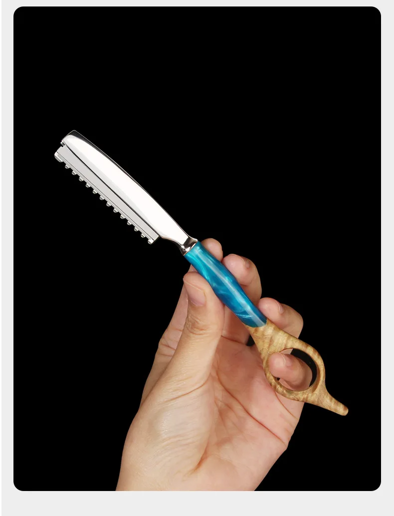 1pc novo pro resina anel de madeira lidar com lâmina de desbaste em linha reta manual lâminas de aço inoxidável barbeiro corte de cabelo mais fino faca titular
