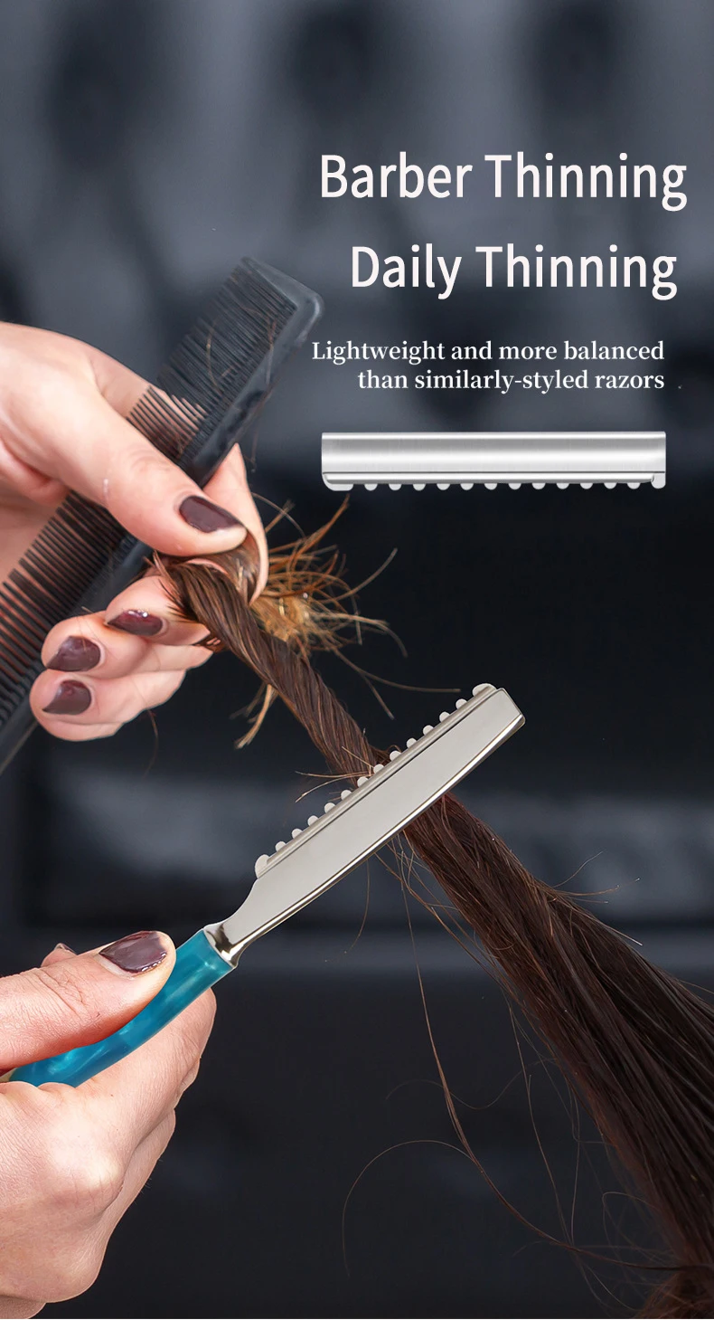 -Navalha para desbaste de cabelo fácil de instalar, inserção e remoção rápida da lâmina, a lâmina para desbaste é projetada de forma inovadora para uma experiência de estilo suave. Fácil de usar para qualquer pessoa, adequada para salão de beleza, uso doméstico e pessoal, proporcionando uma experiência relaxante e de barbear.