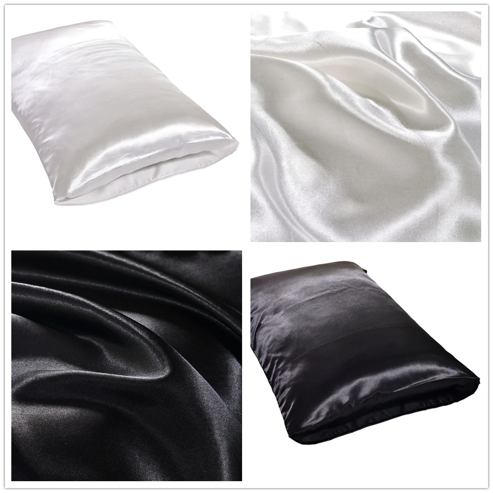 - > 1pc rainha cetim seda fronha fronha capa de cama para casa travesseiro suave retângulo travesseiro