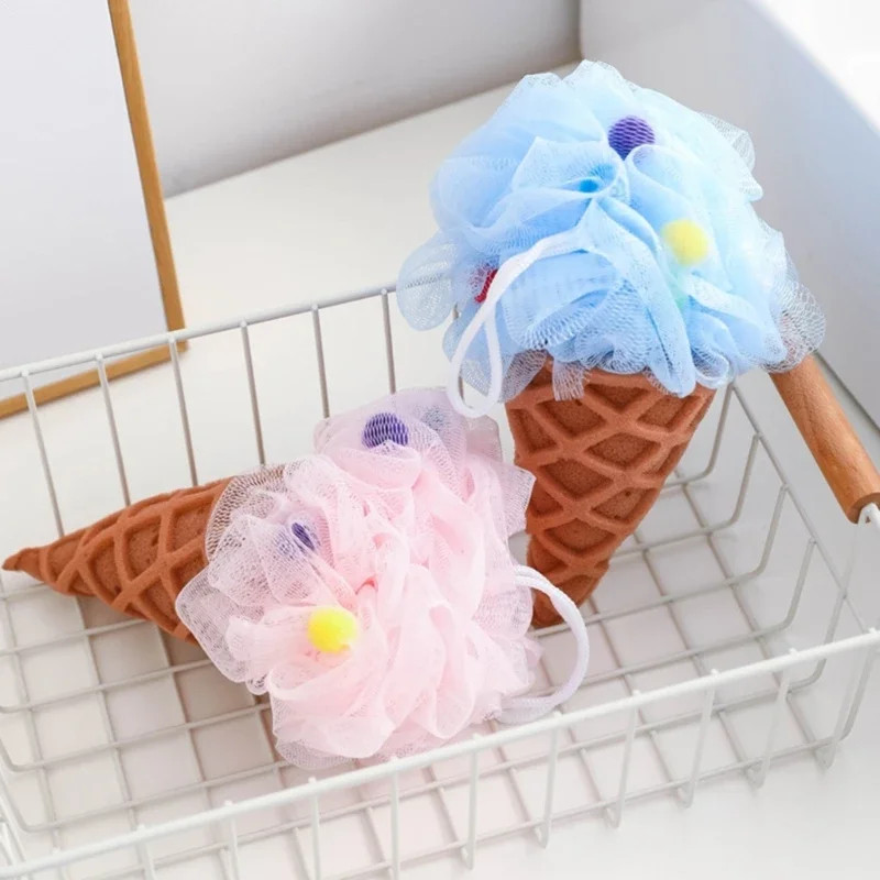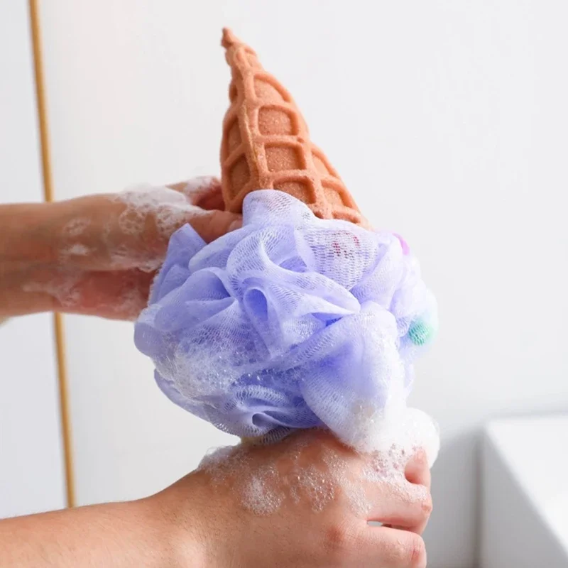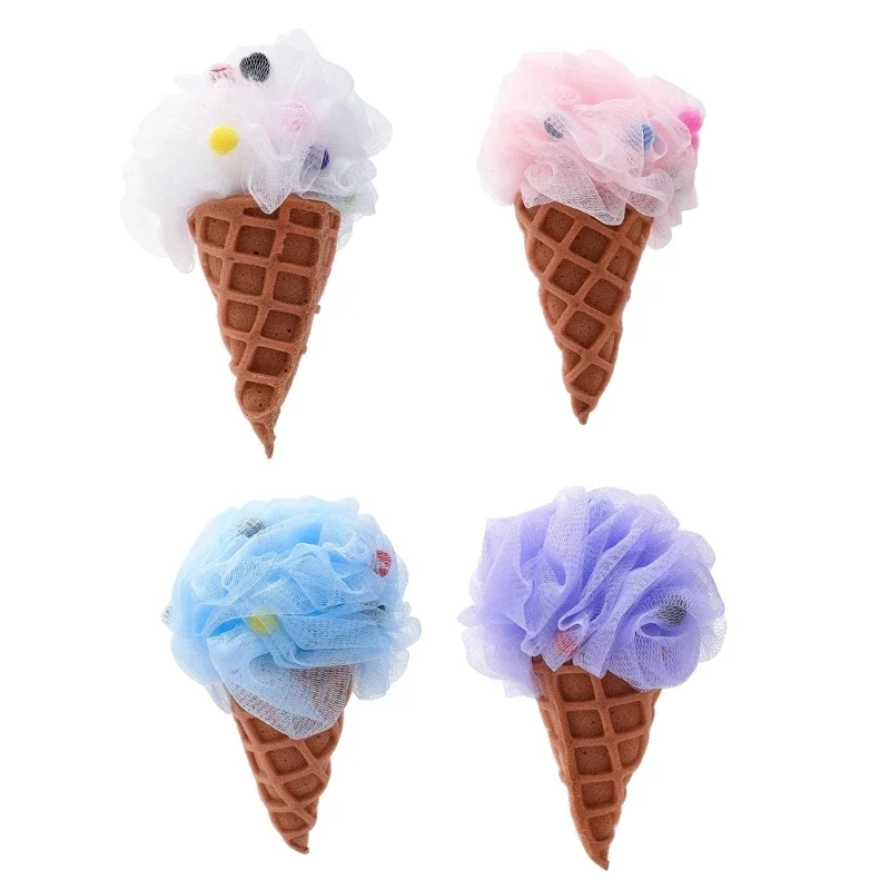 Formato de sorvete adorável e fofo. Use com gel de banho ou sabonete. A esponja de banho produz uma espuma rica e abundante.