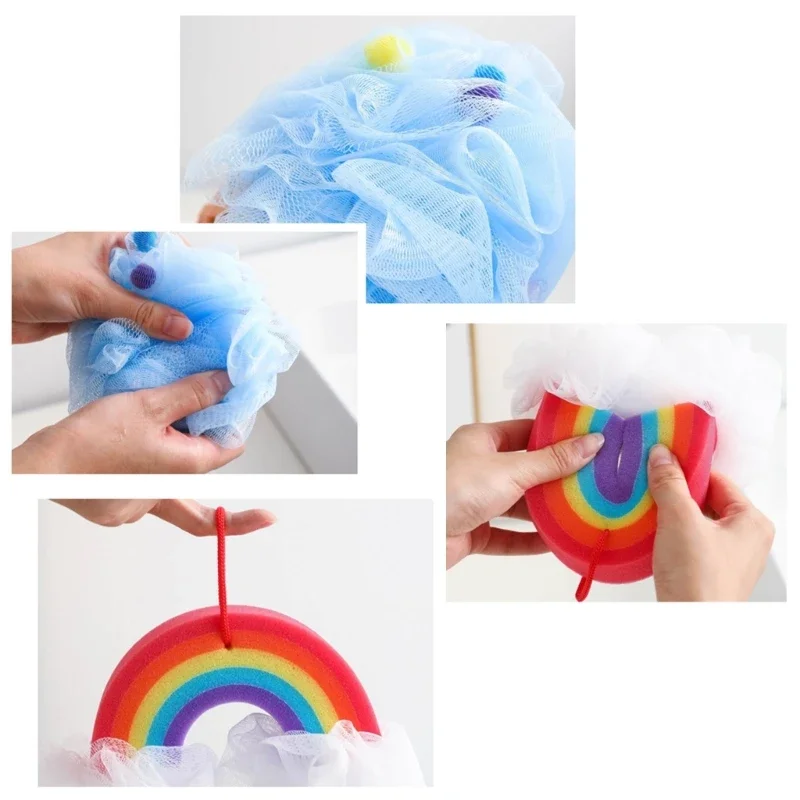 1pc sorvete corpo purificador malha espuma esponja arco-íris banho chuveiro esponja puffs esfoliante purificador banho ferramenta de limpeza